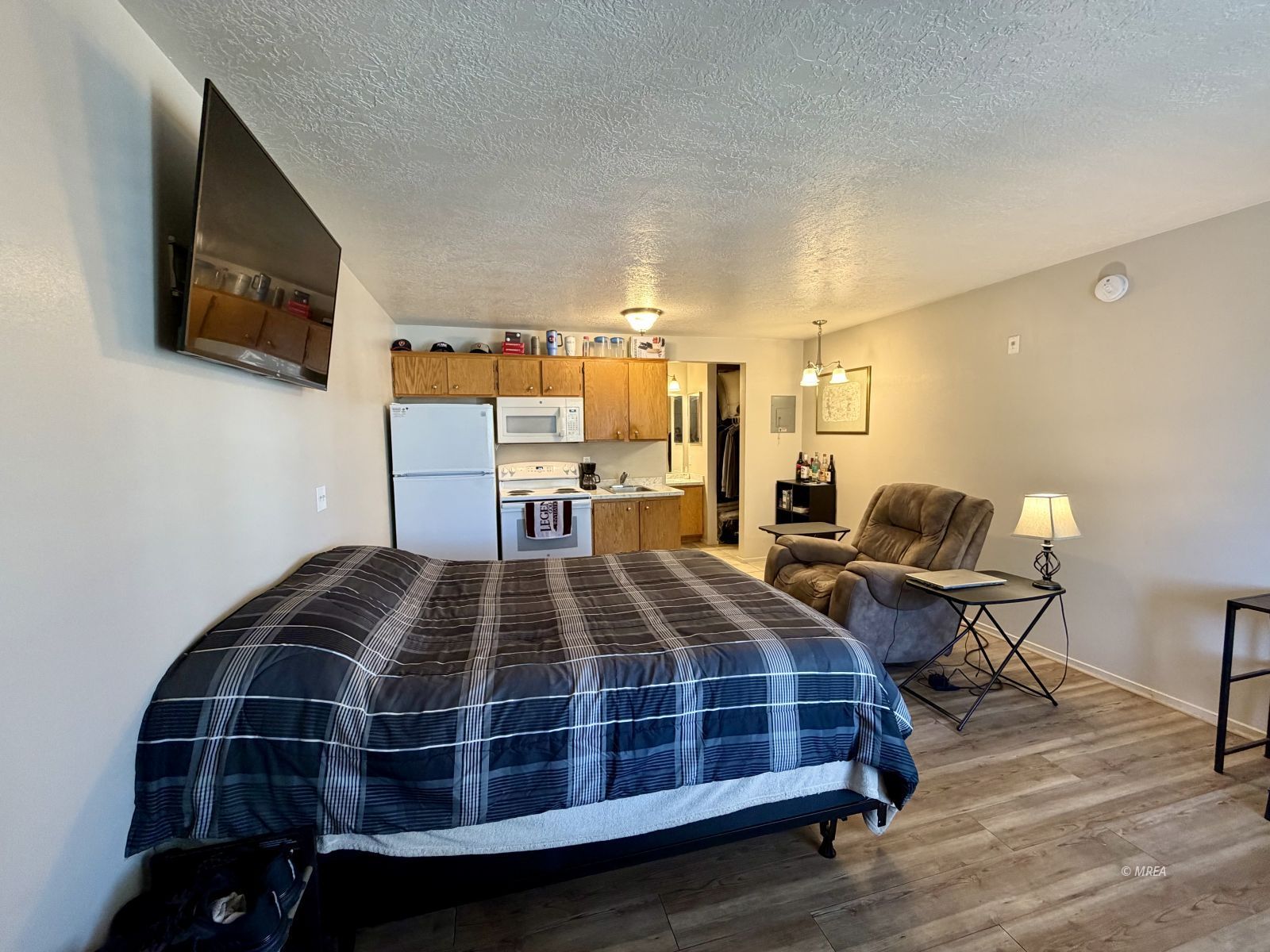 MAIN LEVEL – STUDIO CONDO FOR SALE. Great location with convenient main-level access- making it easy to bring in groceries and everyday essentials. This well-maintained 335 sq ft studio condo is fully turnkey and ready for immediate occupancy. The community offers an onsite laundry facility, plus fantastic amenities including a swimming pool and hot tub-perfect for relaxing. HOA is $180/month and covers electricity, water, sewer, trash, and cable TV, making for simple, predictable living expenses. Ideally situated adjacent to CasaBlanca Resort & Casino, providing easy access to dining, entertainment, and recreation. Perfect as a primary residence, vacation getaway, or investment opportunity!