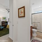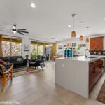 Mid-Century Modern Inspired Bellwood Floorplan! This stunning and rare Bellwood floorplan offers a sophisticated nod to mid-century modern design while embracing today’s luxury finishes. The home features a striking 2-inch quartz waterfall island, 8-foot interior doors, and multi-panel sliding glass doors that create seamless indoor-outdoor living. Inside, you’ll find modern LVP flooring throughout, dual tiled showers, and bold black fixtures accented by a stylish hexagon backsplash in chef’s Kitchen. Flat-panel cabinetry adds a clean, contemporary touch, while custom landscaping enhances the home’s curb appeal and outdoor spaces. Golf Cart Garage is an added bonus along with Air-Conditioned main Garage. A truly unique home for a unique individual-perfectly blending timeless design with modern comfort.