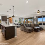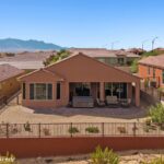 Experience living in this magnificent Sun City Mesquite home, perfectly situated on a premium view lot. Enjoy picturesque mountain and mesa views from your back patio or from your serene backyard. This spacious 2-bed, 2-bath home includes a large den for hobbies or relaxation. The gorgeous kitchen is the heart of the home, featuring upgraded cabinetry, sleek quartz countertops, a beautiful backsplash, and a truly incredible custom pantry. The main suite is a private retreat, with a bay window that frames the stunning vistas. The large walk-in closet has been upgraded with custom cabinetry, offering exceptional organization. The main bathroom is a luxurious space with beautiful tile and quartz countertops. The home features 8′ tall doors throughout and a glass wall slider in the living room, seamlessly connecting indoor and outdoor living. The backyard is an outdoor haven with an extended paver patio and a fully fenced yard. The home also features a dedicated laundry room with a sink and cabinets for convenience. This property is a perfect blend of luxury and practical design, with too many custom features to list. Live the life you deserve in this exquisite 55+ community.