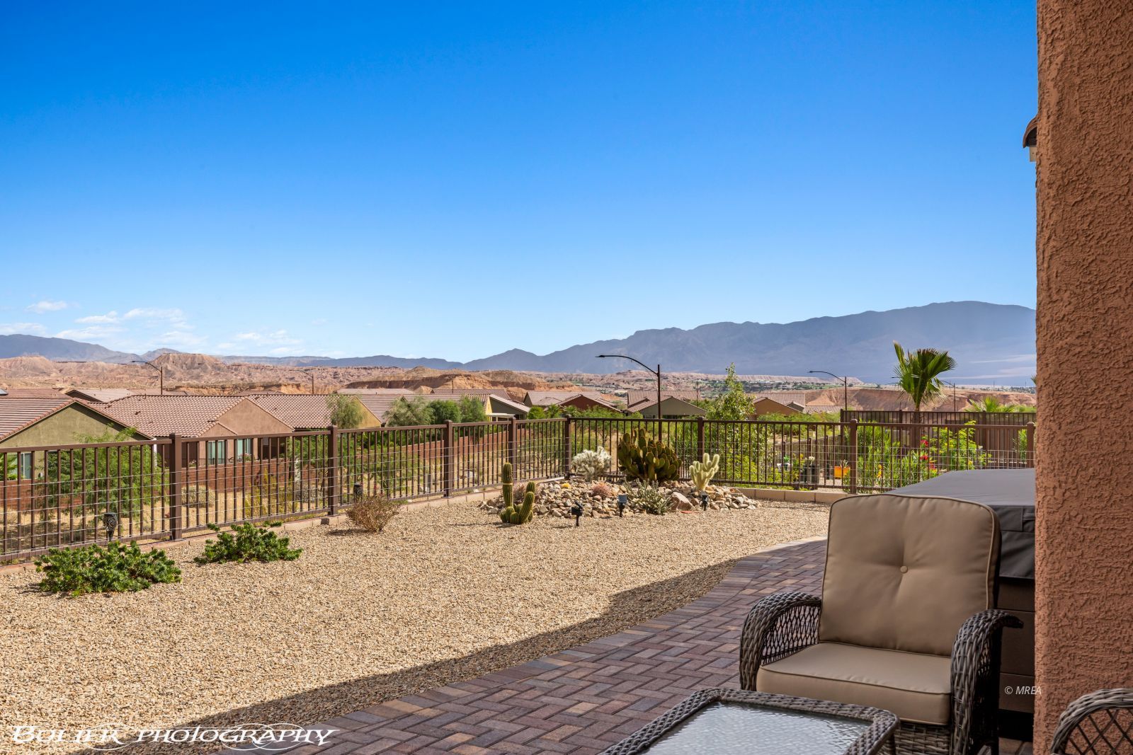Experience living in this magnificent Sun City Mesquite home, perfectly situated on a premium view lot. Enjoy picturesque mountain and mesa views from your back patio or from your serene backyard. This spacious 2-bed, 2-bath home includes a large den for hobbies or relaxation. The gorgeous kitchen is the heart of the home, featuring upgraded cabinetry, sleek quartz countertops, a beautiful backsplash, and a truly incredible custom pantry. The main suite is a private retreat, with a bay window that frames the stunning vistas. The large walk-in closet has been upgraded with custom cabinetry, offering exceptional organization. The main bathroom is a luxurious space with beautiful tile and quartz countertops. The home features 8′ tall doors throughout and a glass wall slider in the living room, seamlessly connecting indoor and outdoor living. The backyard is an outdoor haven with an extended paver patio and a fully fenced yard. The home also features a dedicated laundry room with a sink and cabinets for convenience. This property is a perfect blend of luxury and practical design, with too many custom features to list. Live the life you deserve in this exquisite 55+ community.