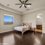 Envelop yourself in luxury. Located in the beautiful gated Calais subdivision, this gorgeous home has dazzling elevated views of the golf course. A very spacious 5,743 sq ft with 5 bedrooms and 4.5 baths and walkout basement epitomizes luxurious living. Views of the mesa and golf course flow into the space highlighting the elegant finishes and architectural flourishes. The formal dining room and downstairs wet bar are perfect for hosting any event. Overnight guests will enjoy their own space in the casita. A huge 1,424 sq ft garage can accommodate a car collection and still have room left over. This immaculate home is perfect for entertaining a crowd or enjoying the quiet from your personal retreat. This home is a dream come true! Side yard is perfect for privacy and future pool.