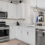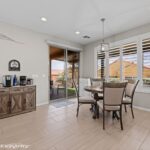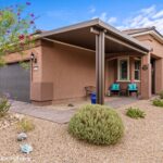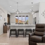 Welcome to this stunning Sun City Mesquite Pine Springs model home. This beautifully appointed home offers a thoughtfully designed living space that feels fresh and inviting.The heart of this home features a spacious kitchen with room for either an island or dining table, making it perfect for both daily meals and entertaining guests. Custom cabinet design includes oversized drawers for maximum storage, complemented by elegant Calcatta quartz countertops. Beautiful tile flooring extends throughout the main living areas, while comfortable carpeting graces the den & bedrooms. Plantation shutters add sophisticated charm while flooding the interior with natural light. The home comes move-in ready with ceiling fans & pendant lighting already installed, eliminating the guesswork of immediate upgrades.Step outside to discover a completely landscaped & fully fenced yard. Two custom pergolas add architectural interest and create perfect spots for outdoor relaxation or dining. This property combines the best of Sun City Mesquite living with thoughtful design elements throughout. The home represents an excellent opportunity for buyers seeking a well-appointed residence that is move in ready!