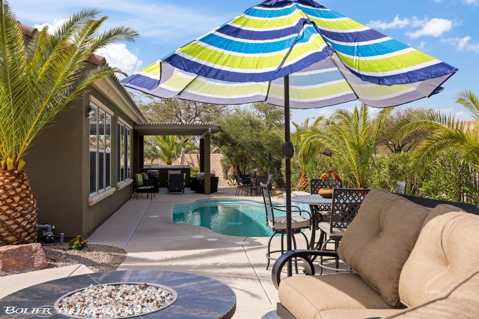 Enjoy luxurious 55+ living in this impeccably maintained 3 bed, 2.5 bath home (2,408 sq ft) on a premier golf course lot. Located on a quiet cul-de-sac, the over -acre property offers unparalleled privacy, breathtaking mountain views, propane/solar heated swimming pool, stunning landscaping with a BBQ island, pizza oven, and mini fridge. The spacious open floor plan includes a den/office, a breakfast nook, with washer/dryer & fridge included. The living room is defined by its luminous, window-filled ambiance. Luxury vinyl tile in the primary bedroom blends seamlessly with the chic, green accent wall. You will be mere steps away from the Sun City Rec Center, that includes pickleball courts, tennis courts, a gym, indoor/outdoor pools, and a putting green. You can build a house for this price, but you cannot replicate this prime location, elegant landscaping, or high-end outdoor additions. Factor in approximately $10,000 in upgrades since the last sale and this is a rare opportunity for a move-in-ready lifestyle in a coveted setting.