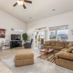 This is for the ones who don’t want a middle unit, the ones who like a little extra elbow room and fewer shared walls, the ones who appreciate privacy and awesome views. This one’s for watching the sun come up over the mountains in the morning and being grateful that it moves along so the east-facing patio stays shaded in the afternoon, because nobody wants to sweat through happy hour. This is for the ones who prefer big open living space instead of chopped-up rooms, for ceilings so high the whole place feels – well – palatial, and for tile floors where life actually happens, because real living (and golf shoes and tearing it up in the RZR) can be messy. This is for two master bedrooms so no one gets stuck with the short straw, double masters with walk-in closets, because yes, your husband needs somewhere to put his clothes too. This is for pulling into a two-car garage inside a gated community where neighbors wave and everything is well kept. And this one’s for saying, “Here’s a full-price offer,” so you don’t have to move a thing-all the furniture inside and outside stays, when you pay asking price. No measuring tape, no moving trucks, just bring your toothbrush and live.