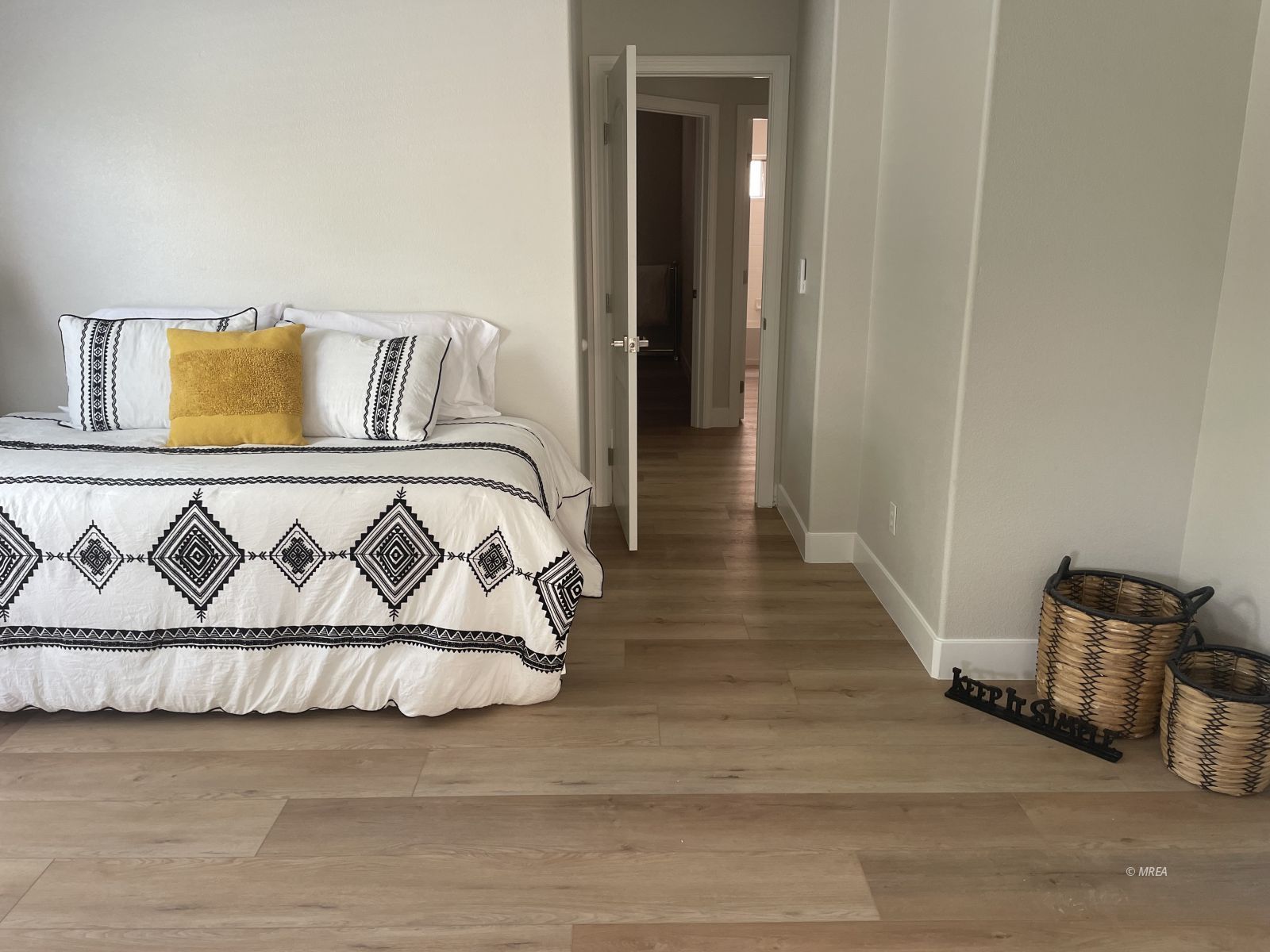 GATED! Near Casa Blanca Golf Course. Enjoy resort-style living in this beautifully updated rare single-family home located within the sought-after gated community of Sunset Greens. Unlike most townhome-style residences here, this is a true detached home offering extra privacy and space. Featuring fresh and beautiful NEW LVP wood floors, NEW 5″ baseboards, NEW stainless steel appliances, and NEW crisp white interior paint throughout. Bathrooms include NEW toilets, NEW faucets, NEW lighting fixtures and the home is partially furnished for move-in ease. Step outside to a newly landscaped backyard with pavers, decorative rock, a block wall for privacy, and NEW ceiling fans inside and out! The community offers impeccably maintained common areas, two sparkling swimming pools, and discounted rates at the CasaBlanca Golf Course just nearby. Complete with NEW epoxy finish two-car garage, this home is a rare find in a highly desirable Mesquite location! Note this is a unique detached home in Sunset Greens, not a townhome! Casa Blanca offers generous discounts to Golf for residents. Well manicured neighborhood. Front yard is maintained by HOA