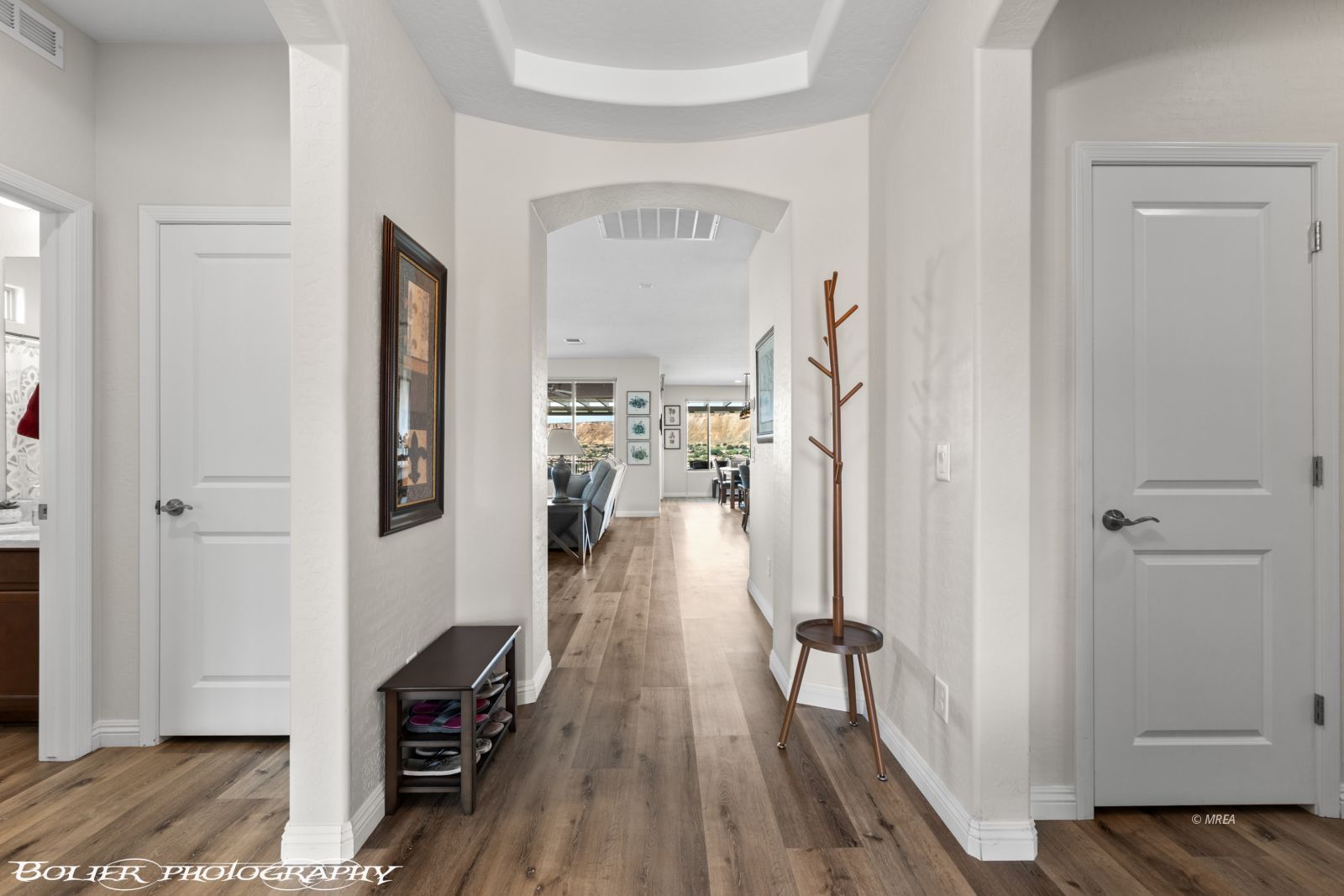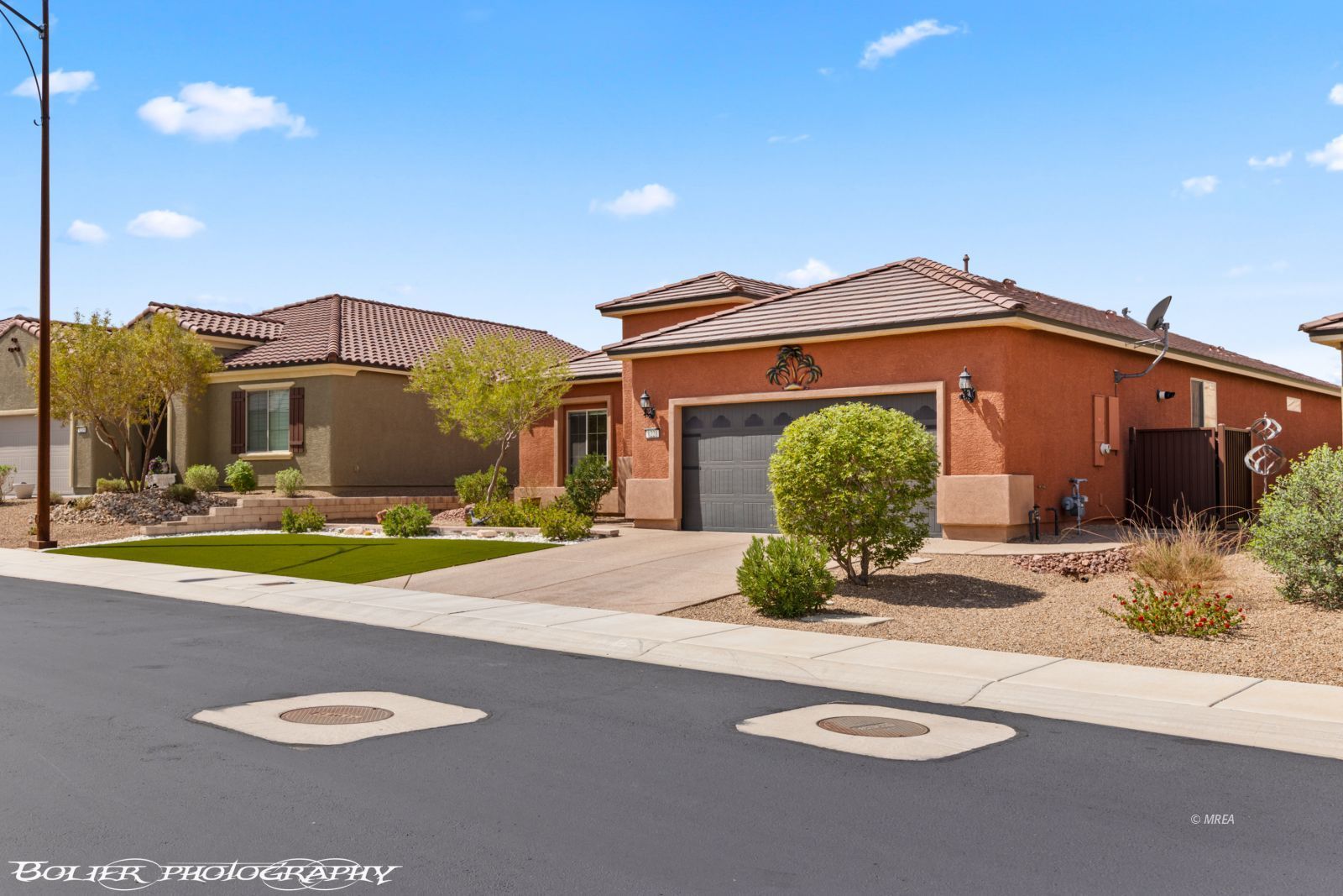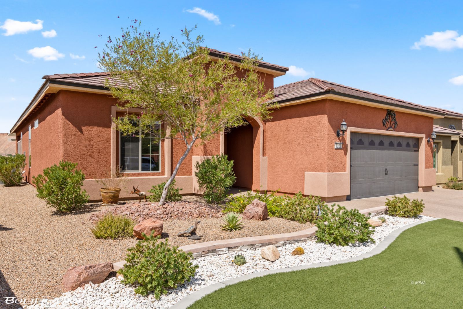 Welcome to 1221 Tortoise Ridge, a stunning single-story home at Sun City Mesquite. Built in 2021, this 1,828 sq. ft. residence offers 2 bedrooms, 2 bathrooms, & a generously sized bonus room, perfect for a home office, den, or hobby space.The home’s curb appeal shines with epoxied exterior concrete, custom landscaping including garbage enclosure, and lush synthetic turf in both the front and rear yards. In the backyard, enjoy year-round outdoor living with an extended pergola covering complete with privacy slats & sunscreen shade, all while taking in elevated western views overlooking Sun City & the golf course. Inside, the home features luxury vinyl plank flooring throughout, with plush carpet in the bedrooms for added comfort & breathtaking views from many of the different living areas & rooms. The gourmet kitchen boasts quartz countertops, a stylish backsplash, updated lighting, & a natural gas stove-a chefs dream. This vibrant community offers a true resort lifestyle with an indoor and outdoor pool, an 18-hole putting course, pickleball courts, and bocce ball courts. Whether relaxing at home or enjoying the amenities, this home delivers the perfect blend of comfort & Recreation