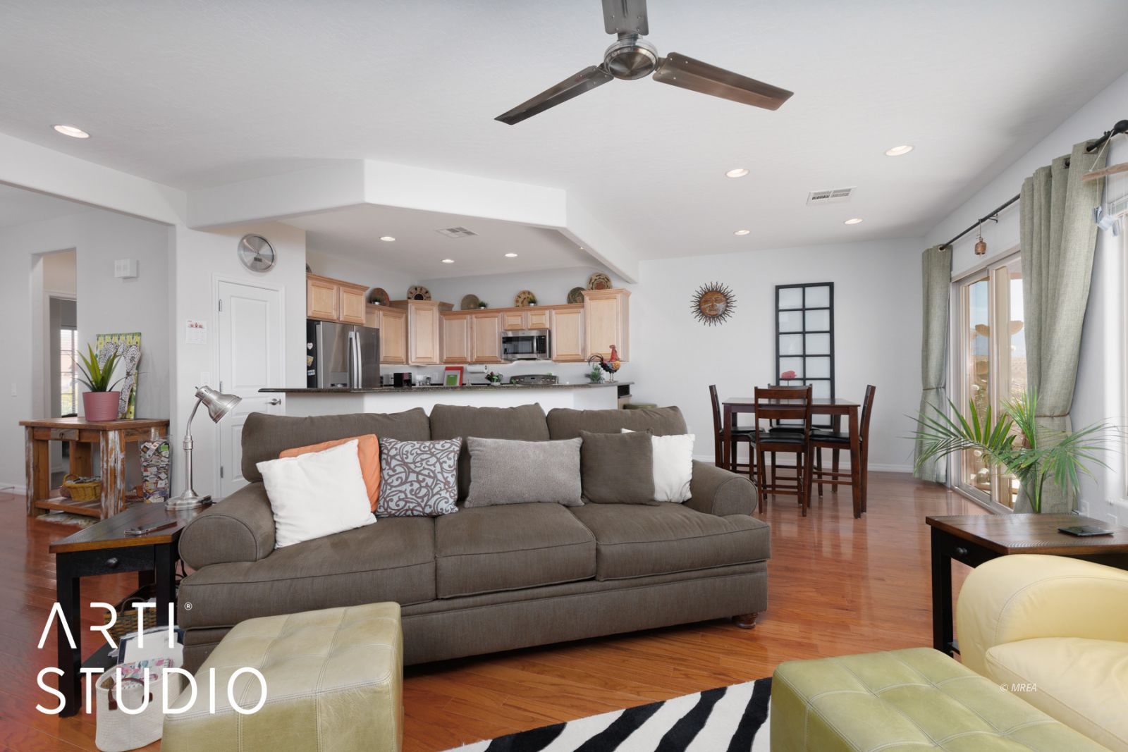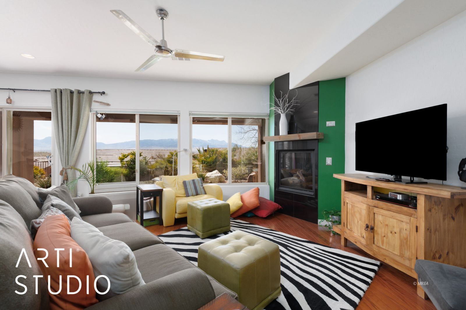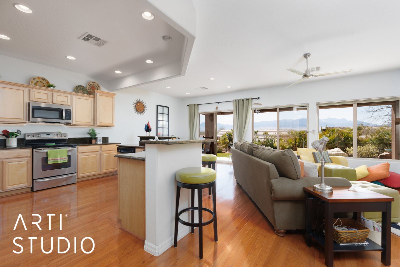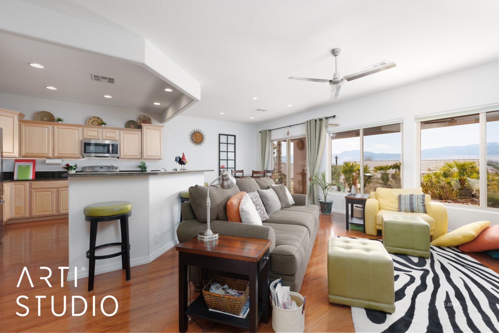 Enjoy your days sitting on the patio and gazing at the mountains. This home is situated on a mountain view lot where the sun shines in your living room all day. This open floorplan is a 2 bed, 2 bath home that has a seamless kitchen to living room concept that makes this home a perfect winter getaway or fulltime residence. The owners are offering this as a turnkey home right down to linens and utensils making this an easy transition for buyers who do not want the hassle of setting up a new home. Upgrades include a propane fire place as a focal point in the living room, stainless steel appliances in the kitchen and granite countertops. When you walk up to the front door, you will see a sitting patio for those mornings or evenings when you want to sit in the shade. The home has also had some recent upgrades such as new exterior paint, new refrigerator, and a new undercabinet microwave. The back yard has artificial grass with a pavered patio that is perfect for entertaining guests or just relaxing and soaking in the sun. Book your showing today while this lasts.