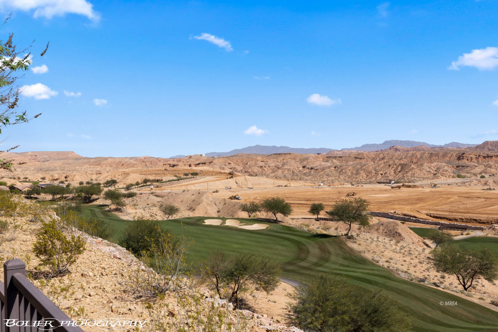 Welcome to 1262 Serenity Ridge in the premier 55+ Sun City Mesquite community. This rare elevated view home offers unparalleled panoramas of the Conestoga Golf Course (Holes 6, 7 and 8), the Virgin Mountains of NV, AZ, and UT, and desert bluffs. Enjoy optimal positioning of the backyard for stunning east-facing sunrises and cool, shaded afternoons. The premier outdoor living space is a true highlight, featuring a raised viewing deck, a custom propane fireplace, a water feature, BBQ, artificial turf, and a weather-proof SunBrite outdoor TV. Expansive multi-panel sliders seamlessly connect this luxurious space to the move-in ready interior, which boasts luxurious upgrades like ceramic tile flooring, granite countertops, premium appliances, and custom draperies. The flexible two-ensuite bedroom layout includes a master suite with stunning views and a custom closet, and a second suite with a built-in Murphy bed perfect for guests or a home office. Practical benefits include an extended 6-ft garage with a utility sink and golf cart space, a low cost-of-living area with mild winters. SIDS is paid in full.