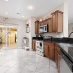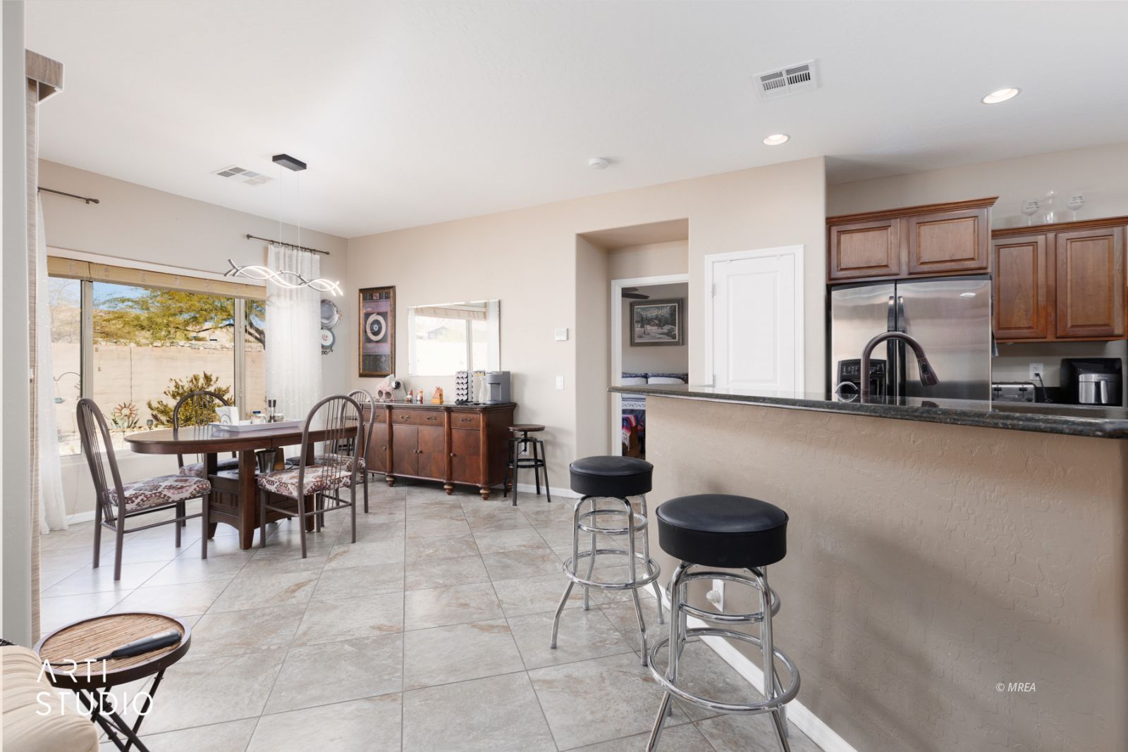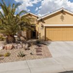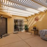 Stone facade adds aesthetic appeal to this 2-BR home plus den and 2.5 car 619 SF garage. Gated courtyard entrance offers security, a cozy and inviting focal point. You will feel at ease upon entering the unique circular foyer. 18-inch diagonal laid tile creates a spacious and open feel. Wood looking tile in the main bedroom and carpet in the guest bedroom provides warmth in these spaces. Granite countertops, stainless steel appliances and upgraded cabinets makes the kitchen ideal for entertaining. All appliances, washer/dryer are included. Main bedroom has a spacious walk-in closet with an ensuite bathroom with double vanities, walk-in shower plus a garden tub for soaking and relaxing. Guest bedroom and guest bath, remodeled with titled walk-in shower, is on the opposite side of the home. Cool deck coating on both the courtyard and extended covered patio flooring provides safety and comfort. Enjoy the Flattop Mesa views from your covered patio overlooking a soothing water feature and beautiful green astro turf. New water heater 2025, exterior paint 2024, new HVAC 2021 and screens in 2026. Sun City’s amenities are the best in Mesquite bar none with discounts at Conestoga Golf Club.