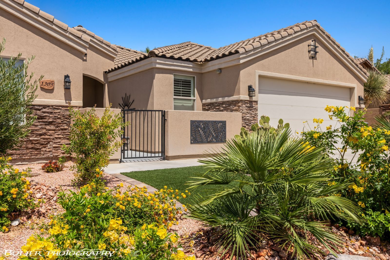 Welcome to 1309 Vista Del Monte Dr., a stunning single-family home on the Oasis Golf Club Canyons Golf course with breathtaking golf and Mesa views. The refreshed front yard landscape makes for beautiful street appeal. Enter This 4-bed, 3-bath home through the gated courtyard and appreciate the wonderful features inside: Light paint scheme, luxury vinyl plank flooring, brushed nickel and oil rubbed bronze fixtures, quartz countertops, ceiling fans and modern light fixtures. Enjoy tiled walk-in showers in the guest bedrooms, & floating cabinets in the spa-like master bath with a soaking tub and separate walk in shower. The detached Casita offers a private bedroom and bathroom-perfect for guests. Entertain with ease on the back patio, complete with built-in BBQ, privacy slats, and sunscreen shades to block wind and sun. Stainless steel appliances and an oversized 2-car garage complete the package! Ownership provides access to the Oasis sports complex pool and sports courts and gym!