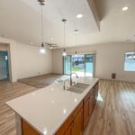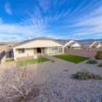 Beautiful new home finishes and high quality in this SPACIOUS, 3 bedroom, two bath, 2064 sf home with extra large 836 sf, 3 car+ garage. Generous sized rooms will not leave you feeling cramped for space. Two large walk in pantries! Quartz counter tops throughout. Large kitchen Island with sparkling pendant lights. All cabinets except where sinks are, feature roll out shelves for e-z storage. Large primary suite features a walk in shower w/ both side & rain shower heads. Plush carpet with thick, cushy pad in the bedrooms and living room, luxury viny plank in living areas & tile in the bathrooms. In the garage, the two car part of the garage is over 30 feet deep & fully insulated including insulated walls and insulated garage door, WITH an air conditioner & heater split for year round comfort. Driveway & back patio areas including 21×7 sun/screen room feature stained, sealed, stamped concrete w/ extra brick paver walkway all the way around the house. Back yard is fully landscaped low maintenance with two large areas of artificial turf, trees, shrubs and rocks and is completely fenced and walled with return gates. CCR’s allow vacation rentals! Many more great features!