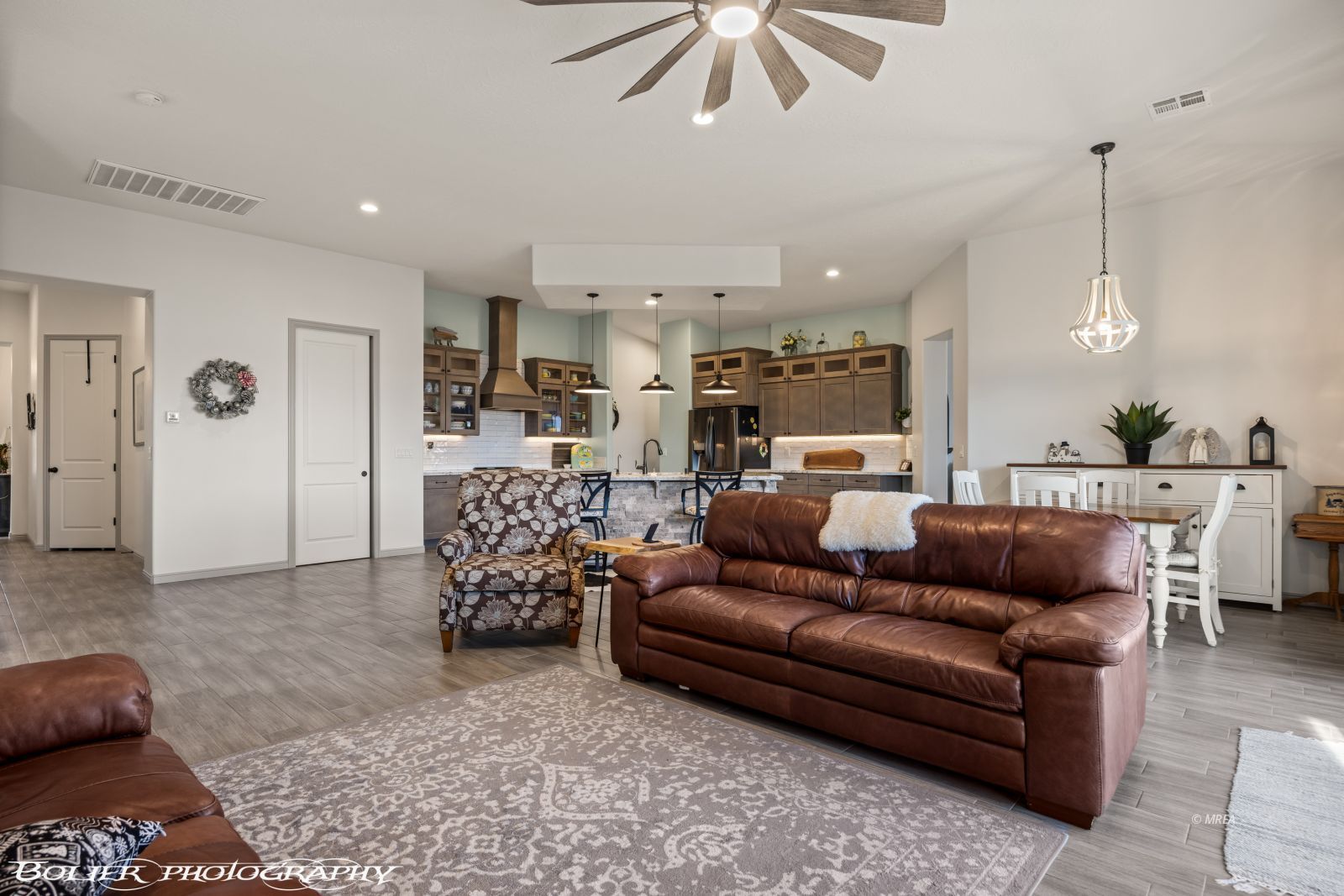 Welcome to 1358 Manassas – Offering Open Floor Plan Living at its Finest. Living room, kitchen and dining area flow seamlessly one into another. Multi-panel glass sliding doors in living room bring in beautiful natural light throughout main living area. Highly upgraded home: Tiled floors throughout the home, costly wood shutters, kitchen: stone accents on front of center island ($2000), custom vent over stove, soft close drawers/cabinets, composite ranch sink, backsplash extends to top of cabinets, induction oven, massive walk-in pantry, upgraded granite and cabinets. Living room: Vertical panel blinds ($5,000), electric plugs in floor. Master Bath: Gorgeous oversized walk-in shower tiled floor to ceiling, glass enclosed front. Guest Bath: Tiled floor to ceiling shower w/glass front. Garage door ($7000) is insulated with designer windows. Mountain views from back patio, beautiful extended patio offers plenty of room for outdoor furniture and entertaining. Epoxy floors in 3 car garage. Extra slab poured for hot tub with a 220 line installed. Block wall surrounds entire backyard perfect for privacy. No room for a pool.