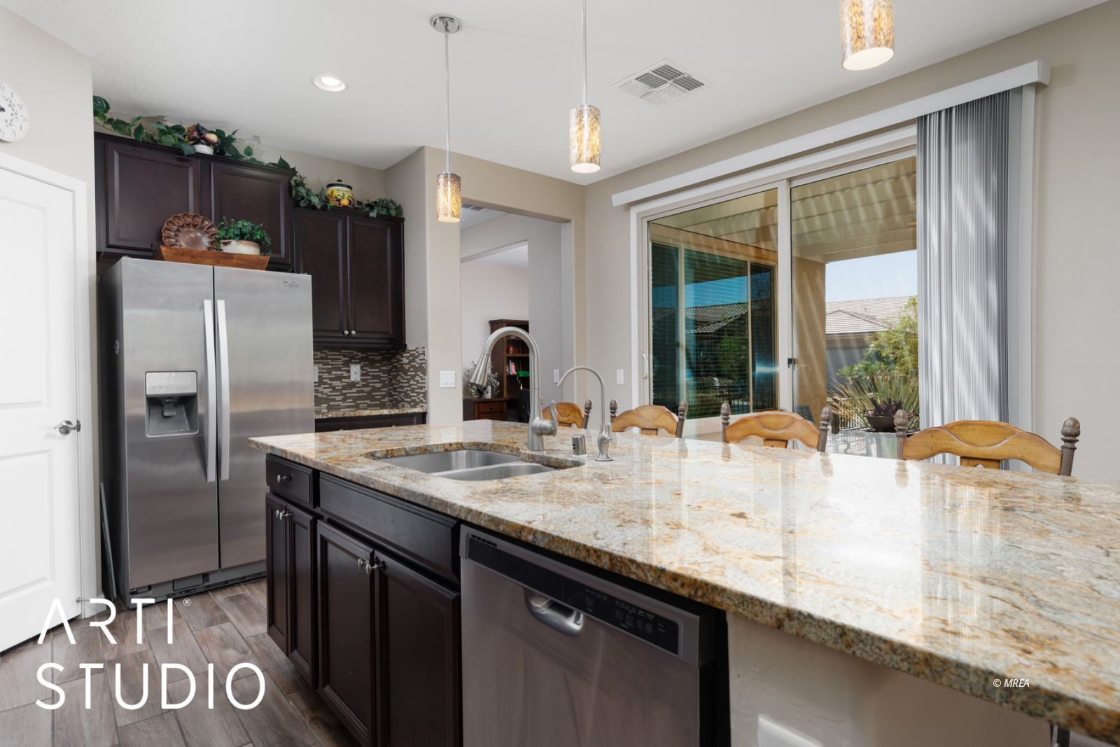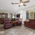 Located in Sun City Mesquite’s premier 55+ community, residents here enjoy access to great amenities, including golf, indoor and outdoor pools, a fitness center, tennis courts, and a full-service clubhouse. This Haven floor plan offers 2 bedrooms, 2 bathrooms, a den and a side courtyard. The SID balance is PAID IN FULL! The kitchen is designed for entertaining, featuring a counter-height granite island, stainless steel appliances, granite countertops and a large pantry. (All appliances are included at no additional cost – kitchen and laundry area) Wood-look tile flooring runs through the main living areas, with luxury vinyl plank in the bedrooms, walk-in closet, and den. The primary suite includes a walk-in shower and a great sized walk in closet. The garage provides a 2-foot extension, added storage space, a water softener and a split cooling system. The exterior offers costly paver stone upgrades on the driveway, side courtyard and extended back patio. Custom pergolas enhance both outdoor spaces. The large, fully fenced backyard provides extra privacy and plenty of room for outdoor enjoyment. This home will not last long-call today for more information and come see for yourself!