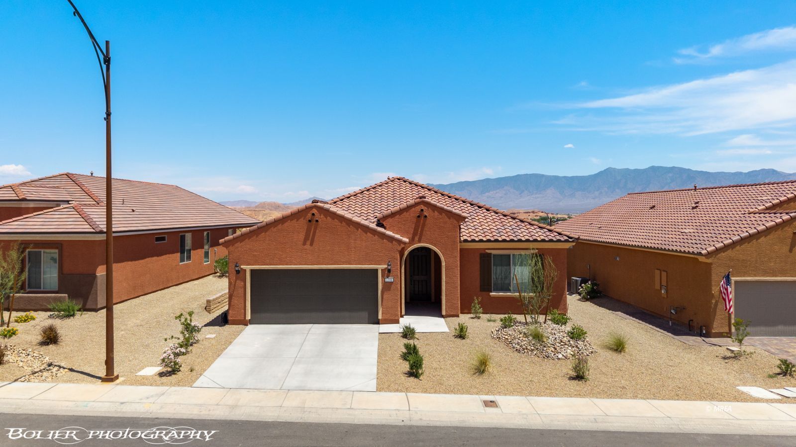 Welcome to your dream home.. This lightly lived-in, like-new home in Sun City’s 55+ community, sits on a premium $58K elevated lot with sweeping mountain views. This backyard faces East offering great sunrise views and shade during the evenings. This immaculate 2024 Hideaway floor plan offers 2 bedrooms, 2 bathrooms and a versatile flex room. The open layout feels bright and inviting, with large windows-complete with custom window treatments-framing the panoramic views. Tile flooring runs through the entry, kitchen and bathrooms, with plush carpet in the living spaces and bedrooms for comfort. The gourmet kitchen features a spacious granite island with seating space for entertaining, generous cabinetry, stainless steel appliances and a walk-in pantry. The fully landscaped backyard includes costly artificial turf, an extended covered patio, and peaceful, uninterrupted mountain views-ideal for quiet mornings or evening gatherings. Pristine, move-in ready, and packed with value… this home is better than new! Sun City Mesquite offers nearby golfing, indoor and outdoor swimming, a fitness center, clubs, and more.. Mesquite is just a short drive from Las Vegas, NV and St. George, UT.