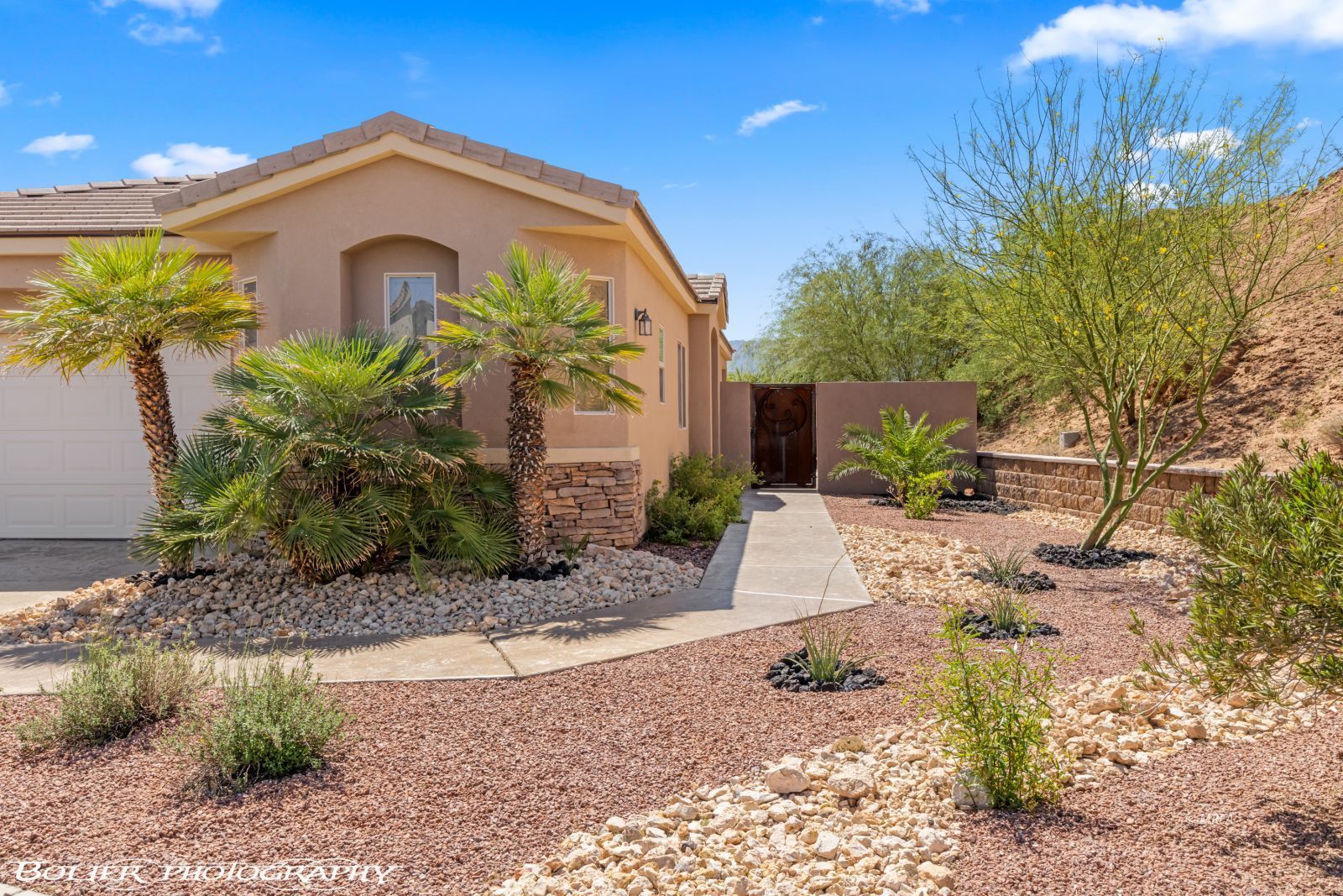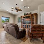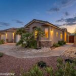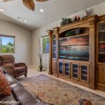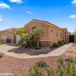 Stunning Quality – One of a Kind – Unobstructed South Facing Views of the Mountains. Fully Furnished. Unforgettable Custom Cabinetry throughout the home. Seller owned a custom cabinet shop and the builder let him create all his own cabinetry for this home. Kitchen showcases a custom designed crescent shaped granite countertop with eye popping color. Kitchen cabinet design and layout is simply of thing of beauty. Windows line the kitchen and dining area offering an abundance of natural light plus views of the mountains. Living room has a signature custom made entertainment center to match the wood cabinets throughout the rest of the home. Main bathroom suite has wood shutters with inlaid glass that swing open into an unforgettable cabinet design, granite counters, custom mirrors, glass surround over-sized walk-in tiled shower with walk-in closet. Guest bathroom offers custom cabinets and charming custom mirrors. Covered back patio has south facing mountain views with a stunning desert mesa on the west side of you home…can’t get a better neighbor than that. Samsung washer and dryer are included – we are move-in ready. COME SEE US !