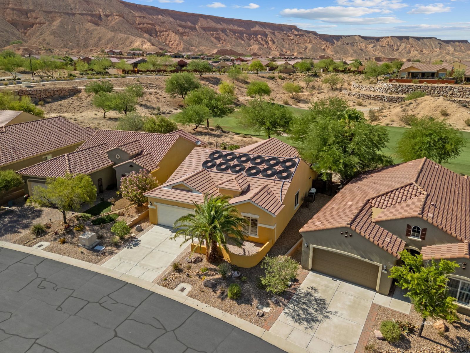 Welcome to your desert oasis in the highly sought-after Sun City Mesquite community. This beautifully maintained 3-bedroom, 2-bath home features an open-concept floor plan designed for comfort and entertaining. A bonus room provides versatile space – perfect for a home office, craft room, or even a potential 4th bedroom. Enjoy the kitchen featuring a raised bar, granite counters, rich walnut toned cabinetry & a pantry. The spacious kitchen flows seamlessly into the living and dining areas, creating a bright and inviting atmosphere. Step outside to your private backyard retreat, complete with a covered patio that provides plenty of shade during the summer months. Enjoy your very own pool and hot tub while taking in the peaceful views of the beautiful green fairway and 12th hole of the Conestoga Golf Course and Flat Top Mesa. This home has been meticulously cared for, is smoke-free and the seller would be open to selling furnished at no additional cost for a convenient, move-in-ready experience. Enjoy all the amenities Sun City Mesquite has to offer, including golf, fitness centers, pickleball, and more-all just minutes from your home. Don’t miss your chance to own this stunning home