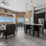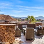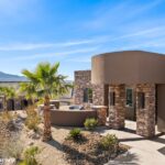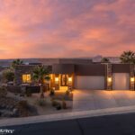 Welcome to this FULLY FURNISHED and ACCESSORIZED extraordinary desert retreat where timeless sophistication meets serene living. This custom home is located on a .27/acre home site in Bella Horizon, a highly sought after, gated community. Perched high above Mesquite, this opulent estate offers panoramic views of the majestic southern mountains, distant fairways and Flat Top Mesa. Expansive glass doors and windows open up to an outdoor Oasis with an impressive covered patio, sparkling swimming pool, built-in BBQ, colorful landscaping and seclusion. The front courtyard views Wolf Creek’s lush green fairways and the eastern mountains. The home is bold but understated and is meticulously appointed, masterfully designed and architecturally stunning. Every detail was carefully considered down to the luxurious bathroom surrounds, stunning floor tile, paint tones and lighting. The home has 3 spacious bedrooms, 2 with en-suite bathrooms and patio access, an office/den, fireplace, and soaring ceilings. The oversized 3 car garage spanning over 1,000/sf provides ample storage for vehicles, recreational equipment, and all those desert adventure toys. This home truly shows like Model.