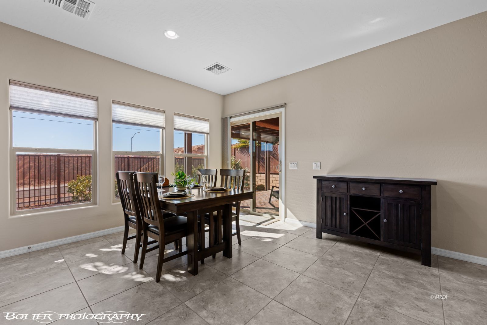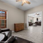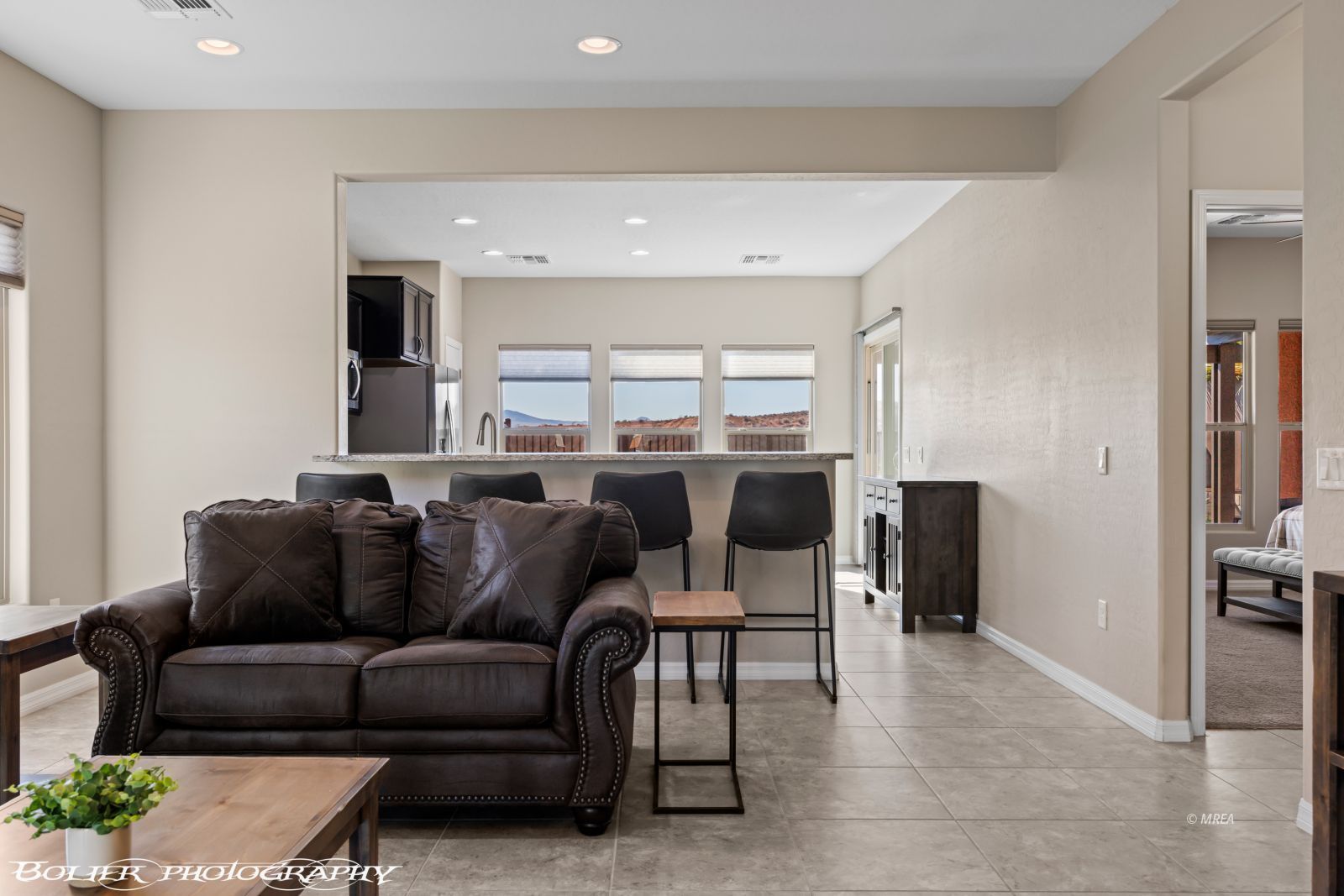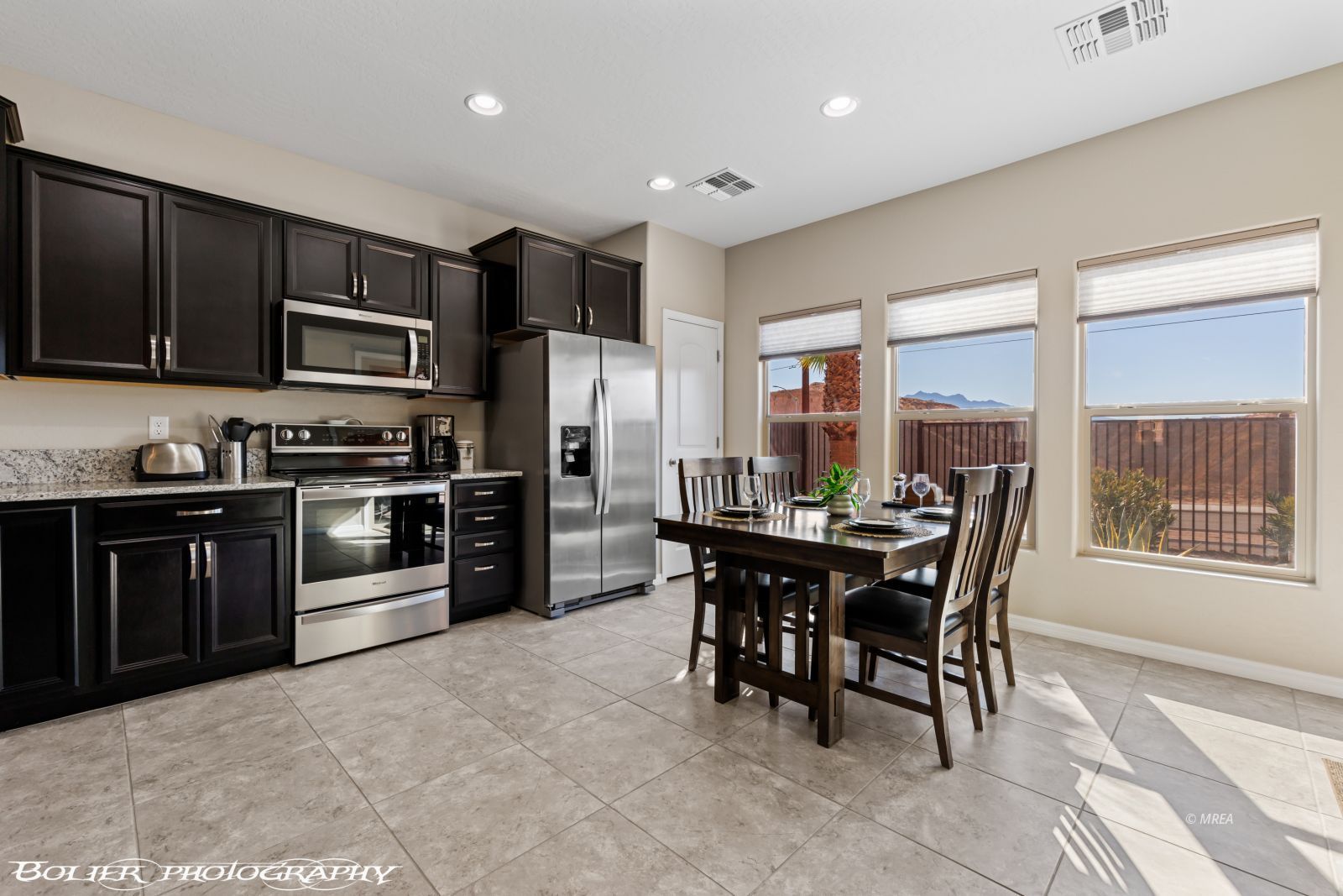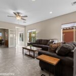 Featuring a beautifully maintained 1,451 sq. ft. two-bedroom, two bath home with a den, offering peekaboo mountain views and tranquil natural desert surroundings. The modern kitchen is a chef’s delight, showcasing stainless steel appliances, granite countertops and abundant cabinetry. The spacious primary suite features an en-suite bathroom with dual vanities, a walk-in closet and a beautifully tiled shower. An open concept living area creates a warm inviting ambiance and flows seamlessly into a private fully fenced backyard oasis – perfect for relaxation or entertaining. You’ll enjoy front and back yard living under custom awnings! Whether you’re looking for a peaceful getaway or a simplified lifestyle, this home instantly feels like a warm hug with the oversized tile flooring and soft warm beige tones throughout creating a seamless inviting foundation that reflects light while adding natural warmth. Offered with a furniture package, this tranquil desert retreat is truly turnkey and move-in ready. All that’s missing is YOU!
