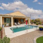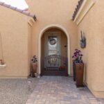 Situated on an oversized .32-acre corner lot this beautifully designed home offers comfort, elegance and privacy within a highly sought-after floor plan. An upgraded paver driveway leads to a custom wrought iron gate and an impressive 8-foot glass panel door and continues to the enclosed trash area. The gated courtyard includes an epoxy floor, mountain views and a custom pergola. This two-bedroom, two-bathroom plus office floor plan offers spacious living that flows effortlessly into the courtyard or backyard oasis. Throughout the home you’ll find granite countertops, white cabinetry with hardware, stylish lighting fixtures, recessed lighting and ceiling fans in both bedrooms. Tile flooring throughout while the guest bedroom is finished with carpet. The kitchen comes with stainless steel appliances, hood vent, wine cooler and reverse osmosis system. The primary suite is spa-like, featuring a soaking tub, custom tile walk-in shower, and generous walk-in closet. The fully fenced backyard is a retreat, complete with an extended pergola, lush landscaping and a sparkling pool. The extended garage accommodates large vehicles, offers extra storage, and includes a water softener system!