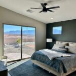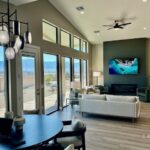 “THE GREAT MESQUITE EASTERLY VIEWS” Val Vista MODEL home 1947 sq ft with 3-bedrooms 3 -baths, 2 car garage with 49′ RV garage. This home is being sold FURNISHED. Features Include: very open plan with amazing easterly view of the virgin MT and north eastern desert, covered patio, quartz counter tops in kitchen and primary bathroom, Step and staggered shaker cabinets throughout home, Beautiful vinal flooring throughout the home, 60′ electric fireplace in living room, Landscaped front & backyard w/putting green, Builder would like to rent back for approx. 6 months at $1900.
