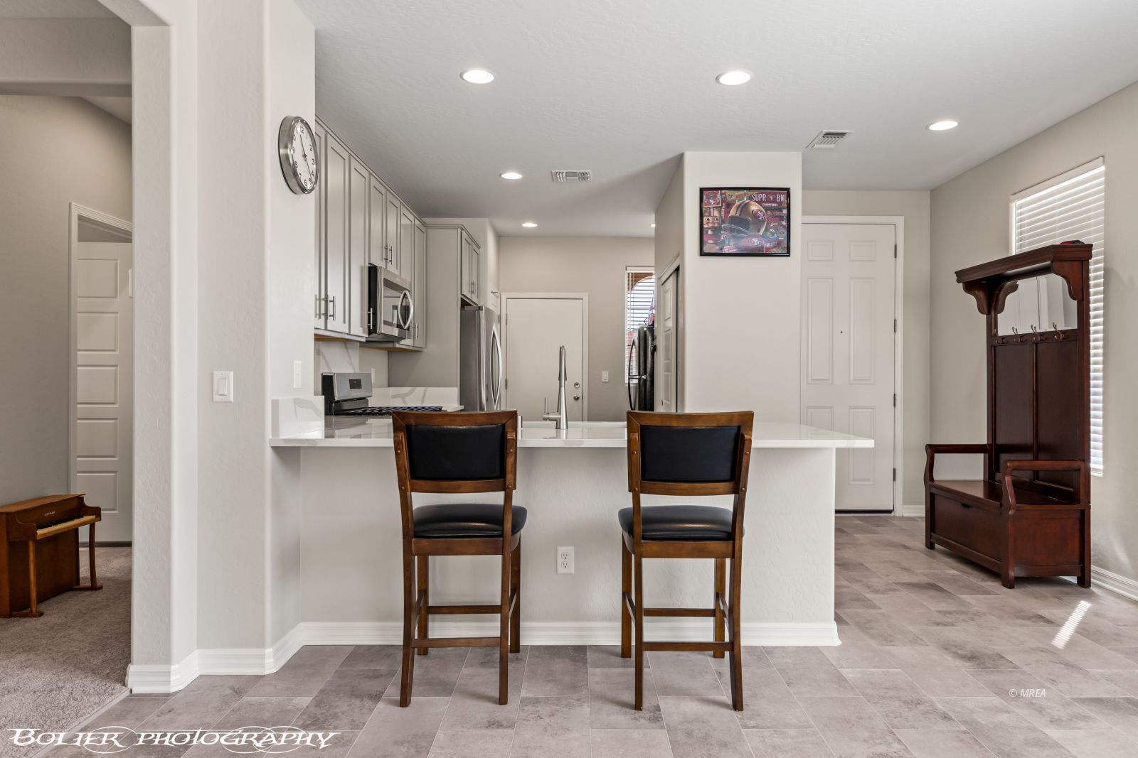 Welcome to Sun City Mesquite a Del Webb 55 plus community. Featuring a 2 bedroom, 2 bathroom with a flex room. Can be used as Den or Office. Open Floor Plan. Kitchen has upgraded 42″ self closing cabinets, quartz countertops and stainless steel appliances, with gas range. Also included is a tankless hot water heater and soft water system. Main bathroom has dual sinks, quartz countertops and spacious walk-in closet. Ceiling fans in all the rooms. Home sits on a corner lot with enough room for a pool. Garage is insulated with a 4ft extension. This home is move-in ready.