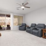 The sunny backyard is a true highlight, featuring nearly $30K in upgrades including beautifully designed low-maintenance landscaping with artificial turf, a fully fenced yard with 5-foot fencing and costly privacy mesh, and an extended patio finished with decorative pavers, perfect for relaxing or entertaining.Inside, the kitchen offers upgraded cabinetry, a large single-basin farmhouse sink, additional recessed lighting, and modern finishes, along with a reverse osmosis system and water softener for added convenience. Neutral, contemporary interior colors create a bright, cohesive feel throughout, enhanced by custom ceiling fans and added can lighting. The primary bedroom includes a charming bay window and a well-appointed bath with a walk-in tile-surround shower and counter-height cabinetry. Additional features include a large laundry room with washer and dryer included, upgraded solar shades on the windows, and a like-new Canyon model layout that shows beautifully and is truly move-in ready.