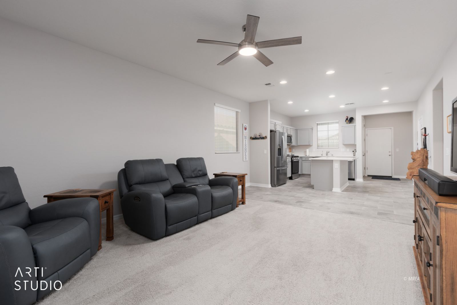 The sunny backyard is a true highlight, featuring nearly $30K in upgrades including beautifully designed low-maintenance landscaping with artificial turf, a fully fenced yard with 5-foot fencing and costly privacy mesh, and an extended patio finished with decorative pavers, perfect for relaxing or entertaining.Inside, the kitchen offers upgraded cabinetry, a large single-basin farmhouse sink, additional recessed lighting, and modern finishes, along with a reverse osmosis system and water softener for added convenience. Neutral, contemporary interior colors create a bright, cohesive feel throughout, enhanced by custom ceiling fans and added can lighting. The primary bedroom includes a charming bay window and a well-appointed bath with a walk-in tile-surround shower and counter-height cabinetry. Additional features include a large laundry room with washer and dryer included, upgraded solar shades on the windows, and a like-new Canyon model layout that shows beautifully and is truly move-in ready.