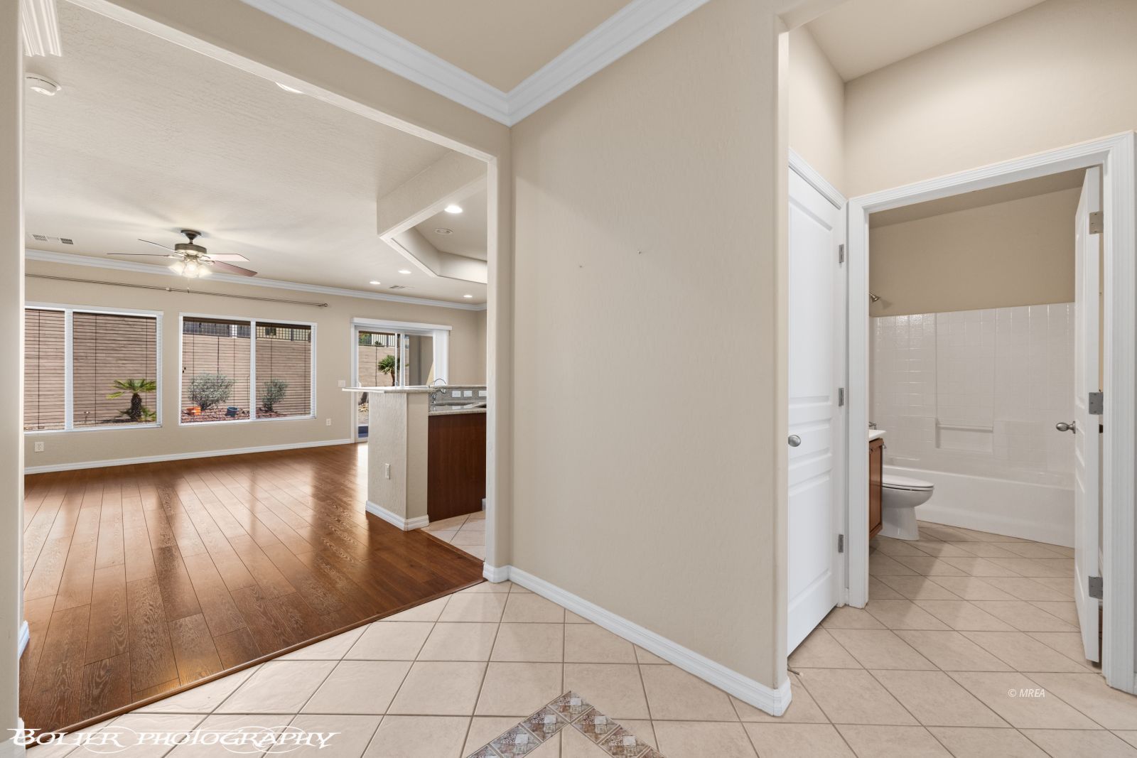 • Interior Features: Ceiling Fans, Flooring- Laminate, Flooring- Tile, Guest House/Casita, Wheelchair Accessible, Window Coverings, Walk-in Closets, Den/Office