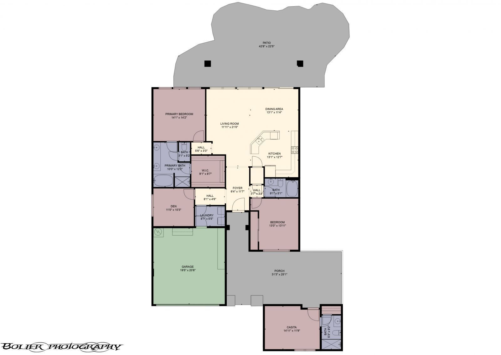 Welcome to 1551 Watchmen Point, a stunning home in a sought-after active adult community that offers a true resort-style lifestyle. This thoughtfully designed property features a two-bedroom, two-bathroom main home plus a private Casita, complete with its own bedroom and bathroom. The Casita design creates a charming courtyard sitting area, perfect for relaxation or entertaining guests. Situated on an oversized quarter-acre lot, the home’s outdoor living spaces are a highlight. Enjoy a large covered patio with a paver brick extension, a cozy fire pit area, and a soothing water feature, all designed for year-round enjoyment. Inside, you’ll find no carpet-only tile and laminate flooring throughout, blending style with easy maintenance. The kitchen boasts granite countertops, and crown molding adds a touch of elegance throughout the living spaces.This home perfectly combines comfort, functionality, and lifestyle-ideal for those looking to enjoy everything an active adult community has to offer. Residents can enjoy the Sun City Pioneer Center which offers indoor and outdoor pools, fitness center and plenty of sports courts for the activity driven enthusiast!