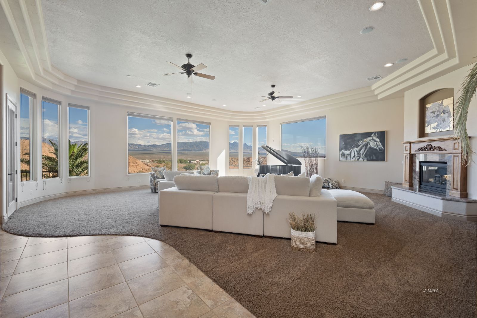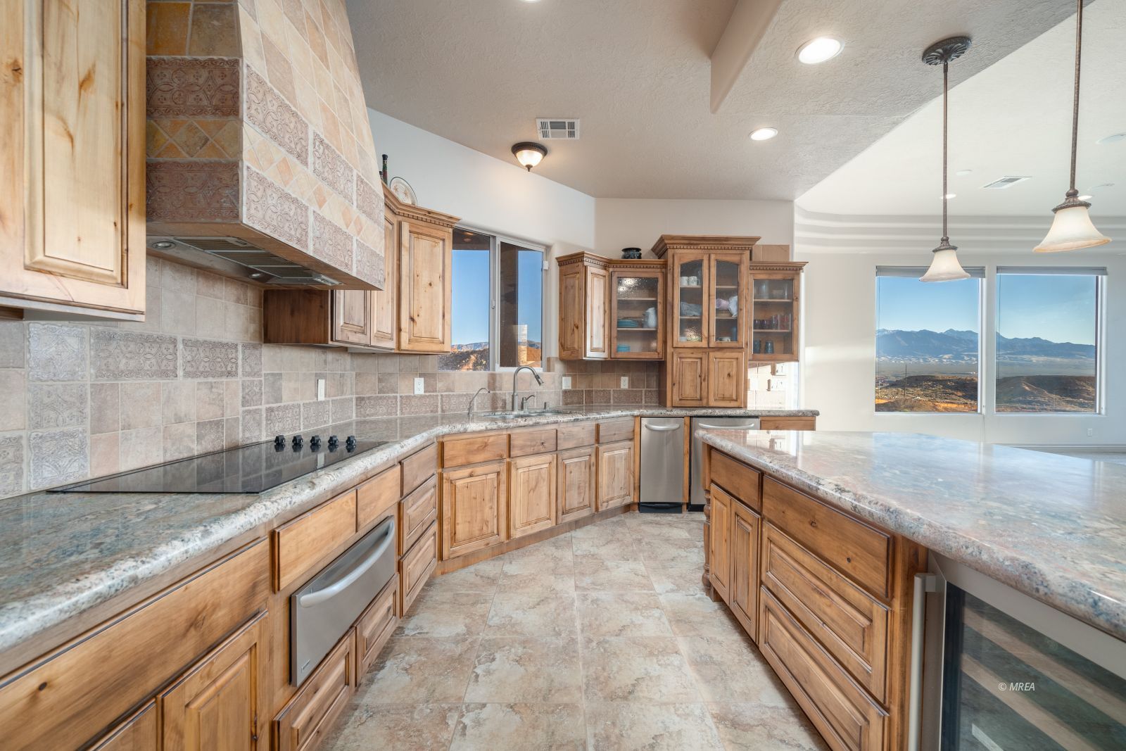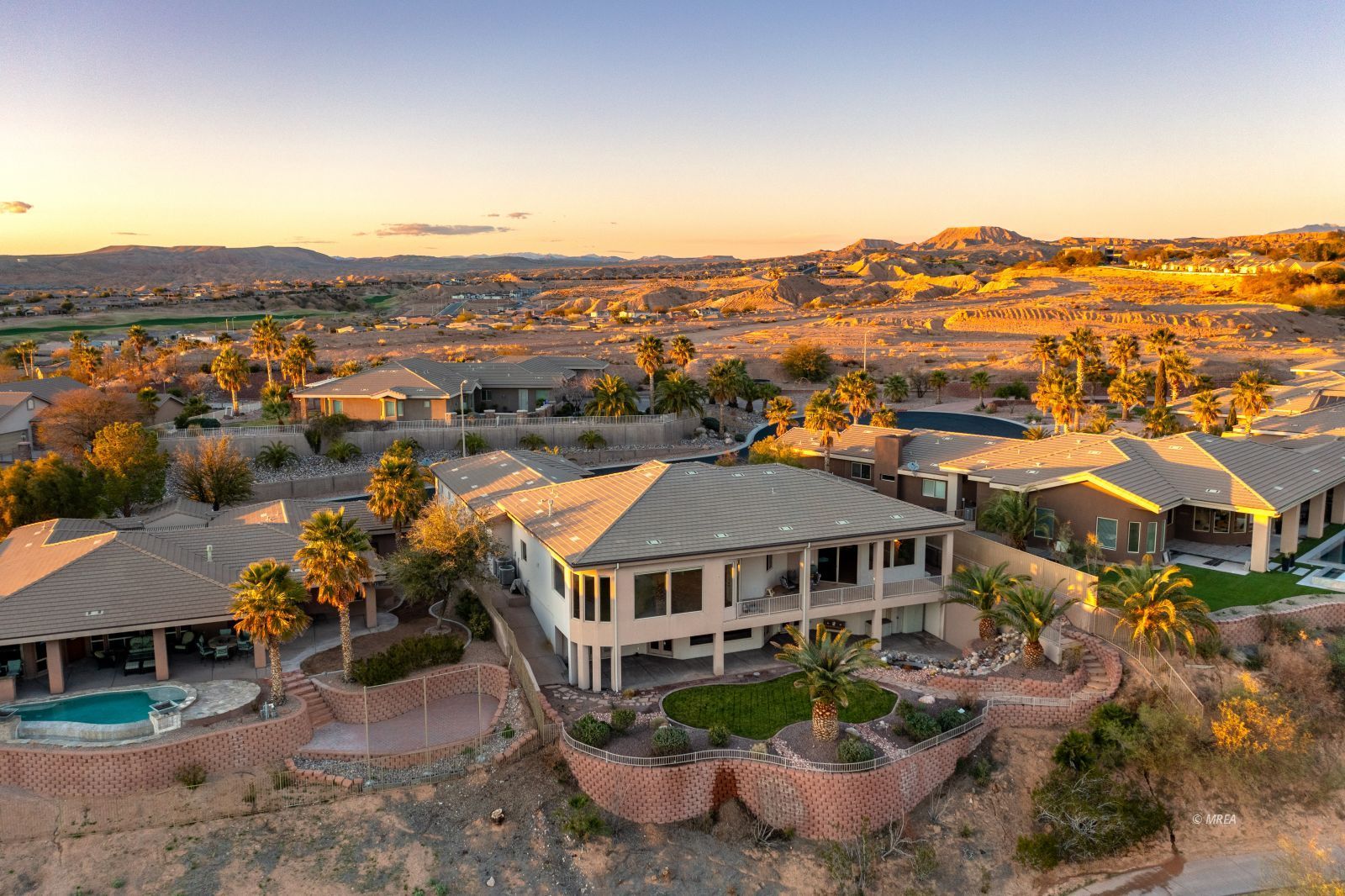 Introducing a masterpiece of luxury living nestled in the heart of Mesquite NV on the18th fairway of The Canyons Course in a favored gated community “Fox Hollow”. This exquisite home boasts unparalleled features, including a massive garage w/RV height door, home to your prized vehicles. Step inside to discover light-stained knotty alder cabinets, complemented by breathtaking granite countertops that adorn the massive gourmet Kitchen and luxurious spa like bathrooms. Entertain guests in front of the majestic rock fireplace, with great room to rival any theatre room. Vaulted ceilings give way to tall windows with spectacular views miles away or retreat to the tranquil backyard oasis large covered patios with shallow steps to lower level complete with a bubbling rock stream! Convenient ramp installed for access from the front yard as well. Outside, the lush landscape complimented with spacious grass yard sets the stage for unforgettable gatherings sitting high above the golf course and against the backdrop of a fluorescent mesa and panoramic mountain views. Experience the epitome of elegance and serenity in this remarkable residence. Welcome home to your ‘sanctuary’ in paradise