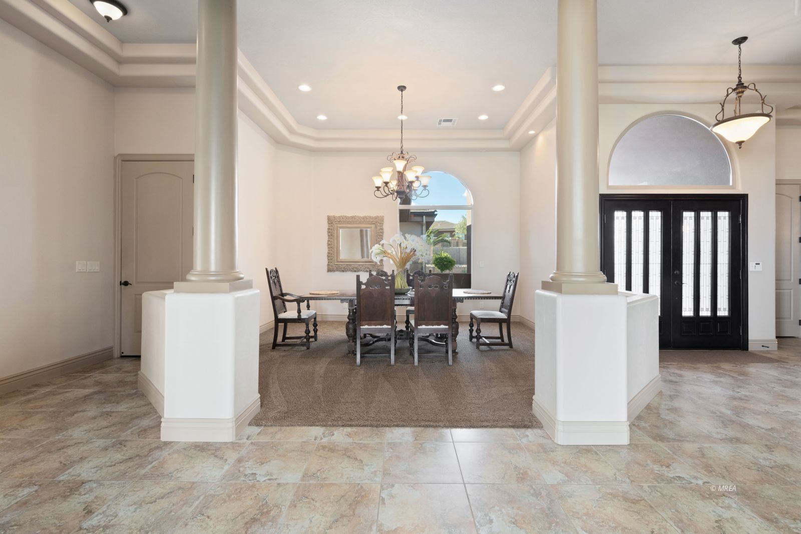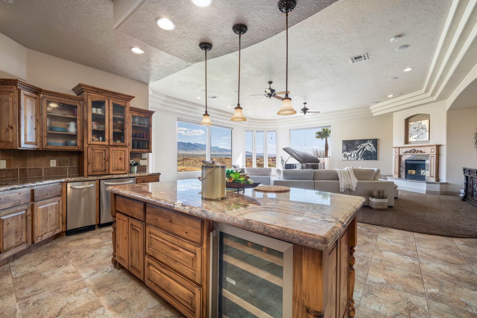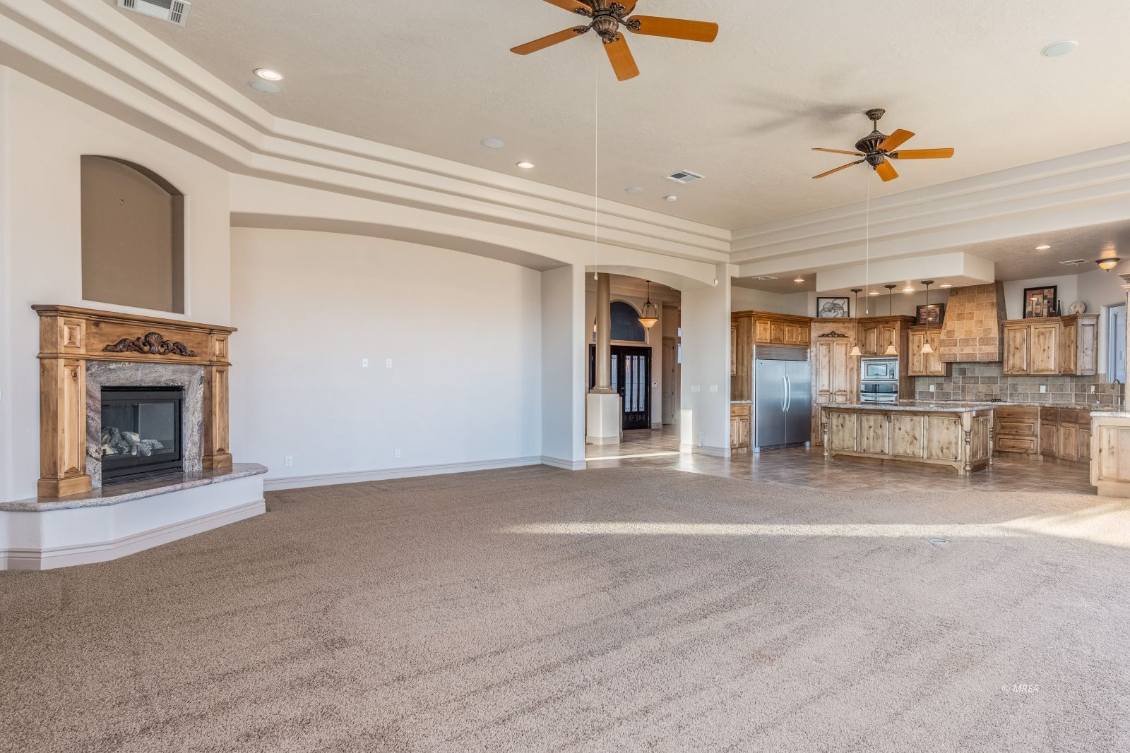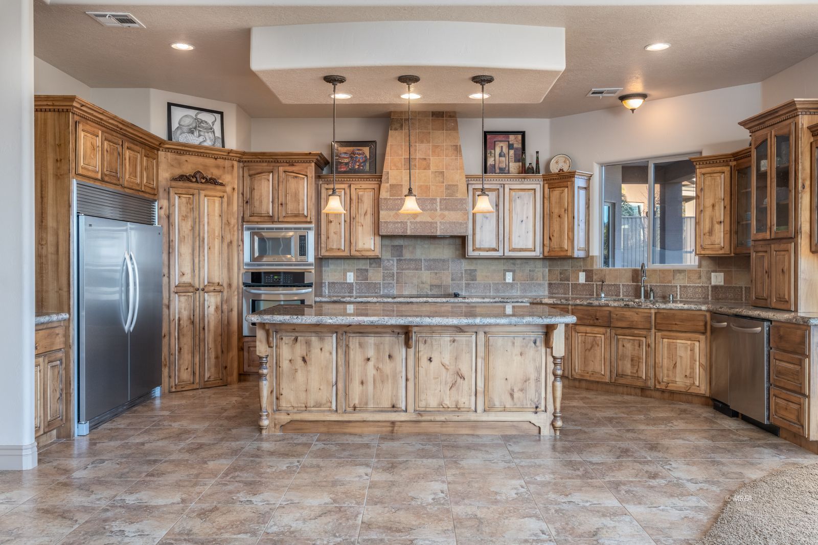 Introducing a masterpiece of luxury living nestled in the heart of Mesquite NV on the18th fairway of The Canyons Course in a favored gated community “Fox Hollow”. This exquisite home boasts unparalleled features, including a massive garage w/RV height door, home to your prized vehicles. Step inside to discover light-stained knotty alder cabinets, complemented by breathtaking granite countertops that adorn the massive gourmet Kitchen and luxurious spa like bathrooms. Entertain guests in front of the majestic rock fireplace, with great room to rival any theatre room. Vaulted ceilings give way to tall windows with spectacular views miles away or retreat to the tranquil backyard oasis large covered patios with shallow steps to lower level complete with a bubbling rock stream! Convenient ramp installed for access from the front yard as well. Outside, the lush landscape complimented with spacious grass yard sets the stage for unforgettable gatherings sitting high above the golf course and against the backdrop of a fluorescent mesa and panoramic mountain views. Experience the epitome of elegance and serenity in this remarkable residence. Welcome home to your ‘sanctuary’ in paradise