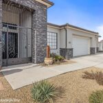 TRULY UNIQUE … MODERN CONTEMPORARY DESIGNED HOME…. ONE OF A KIND PROPERTY … $80,000 SOLAR SYSTEM …PAID IN FULL… POOL …SPA 1288 sq ft GARAGE with EPOXY COVERING ON FLOORS. WROUGHT IRON SOLAR/SECURITY SCREENS. 4 Bedrooms, 3 bathrooms, “Stunning Charcoal Grey Stacked Stone Entry” combined with a bold “Wrought Iron 12 Foot High Privacy Gate” open up to beautifully designed custom WROUGHT IRON FRENCH DOORS with glass insets. TILED FLOORS throughout Kitchen has CUSTOM CONTEMPORARY DESIGNED CABINETS extended to the ceiling with glass insets. Striking backsplash provides sizzle to this kitchen. Five large picture windows surround the living room, dining and kitchen bringing in plenty of natural light. Main bathroom has tiled walk-in shower and soaking tub. EXCEPTIONAL OUTDOOR LIVING ….Stuart Awning has designed a fully covered awning that protects you from the sun. Pool has custom designed elevated sunning areas. Garage is simply over the top with its design and interior upgrades…wait until you see the interior shelving. Stunning custom designed 3rd car overhead garage door opens up to the pool area. REMARKABLE UPGRADES THROUGHOUT !!!