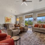 • Exterior Features: Curb & Gutter, Fenced- Partial, Landscape- Full, Lawn, On Golf Course, Sidewalks, Sprinklers- Drip System, Sprinklers- Automatic, Trees, View of Golf Course, View of Lake, View of Mountains, Patio- Covered, Swimming Pool- Assoc.