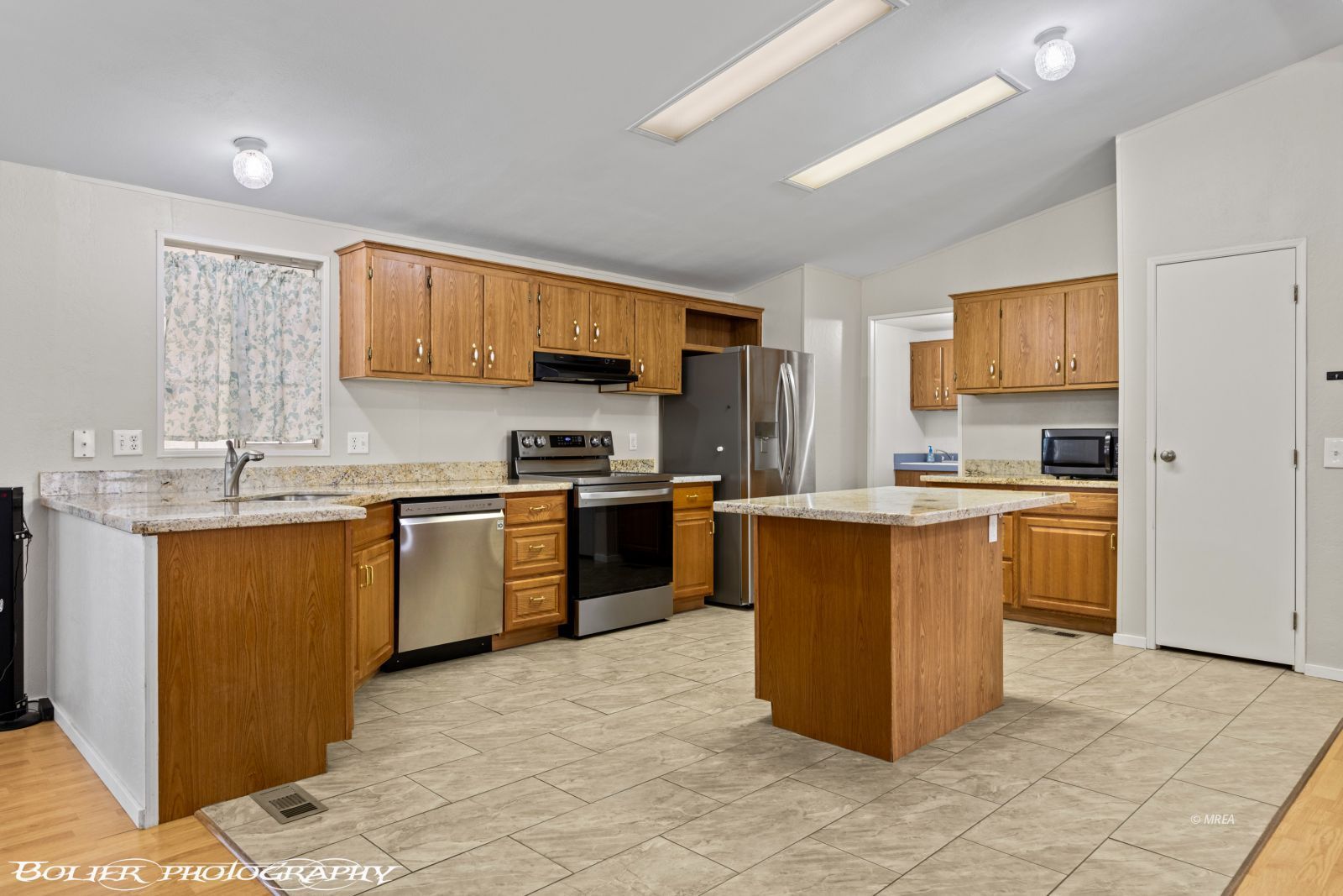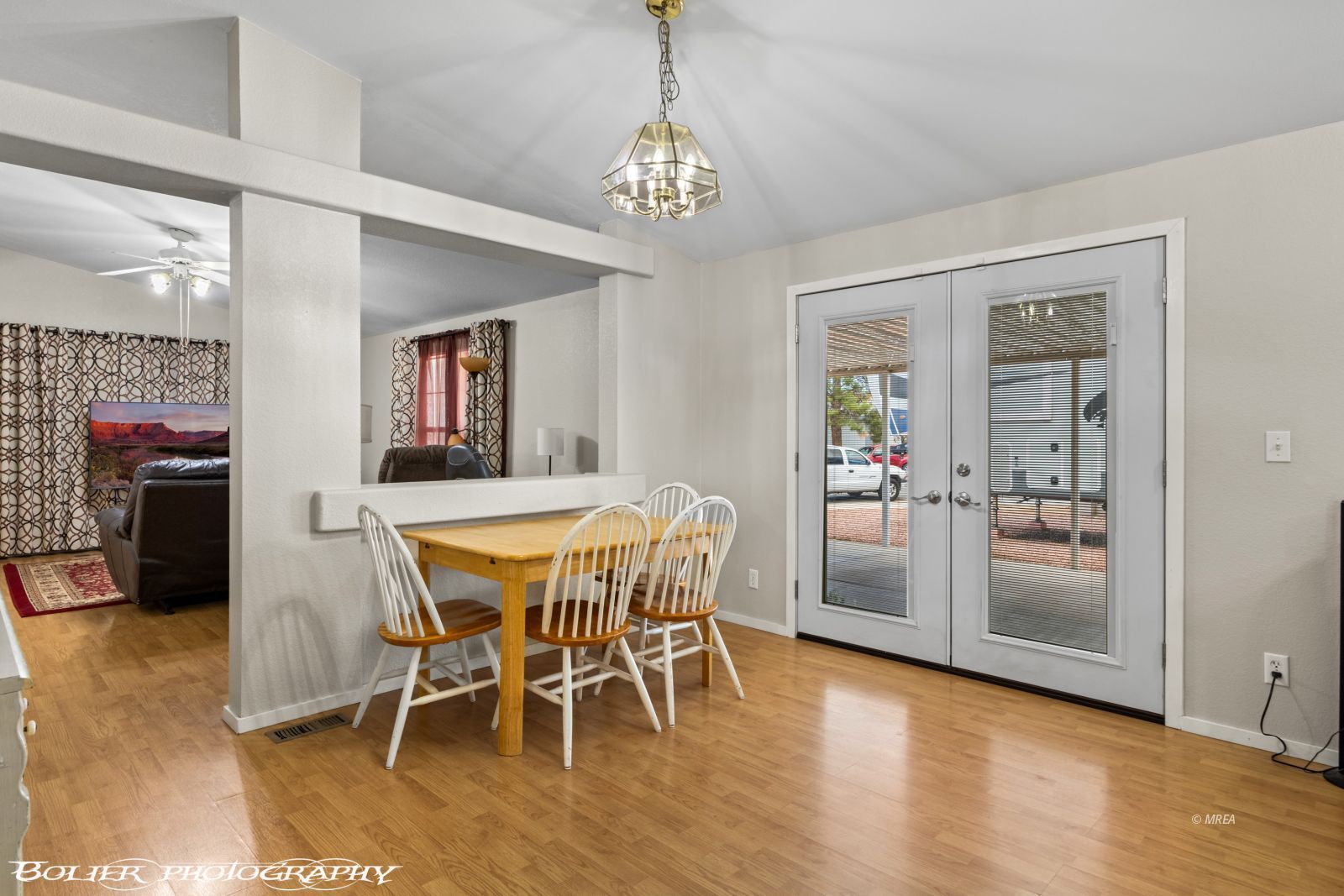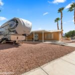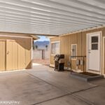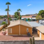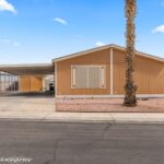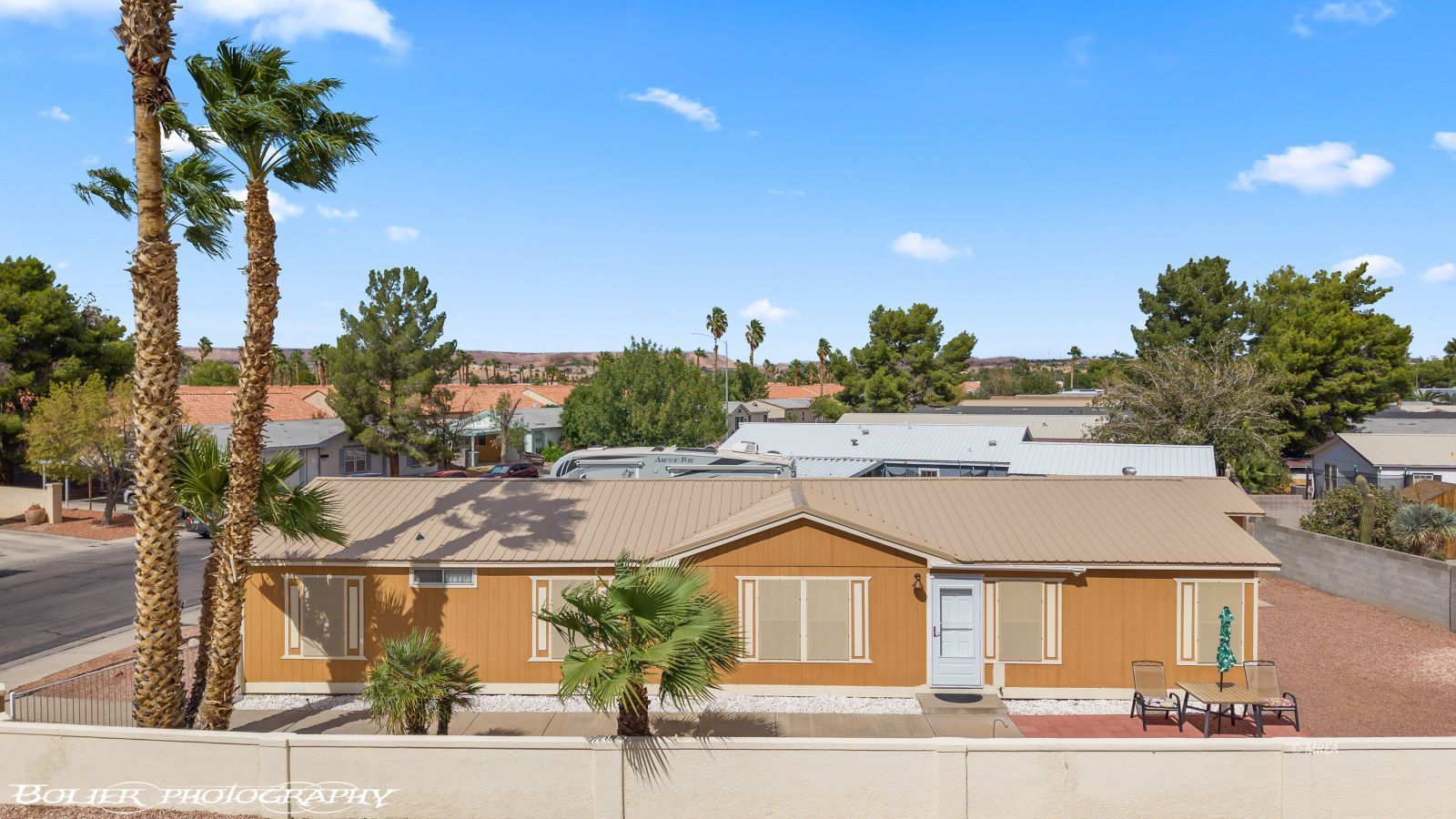 Unbeatable price on this bright and open 3 bed 2 full bath home with RV Parking, up to 4 vehicle carport, and super low HOA. This well kept single story manufactured home not only has tons of outdoor space, but the interior is also spacious with higher ceilings and an open concept living, family, dining, kitchen combo including fresh paint and a stainless appliance package less than one year old. On one side of the house you have lots of open desert landscape and a sunny patio with mountain views. On the other you have the shade, TONS of parking area, and a shed doubling as a workshop. All windows equipped with solar screens and ceiling fans throughout interior. Great location with Hafen Park and its trail system just across the street, and a convenient short drive to shopping or jumping on the I-15. Come see this affordable & accommodating home today!