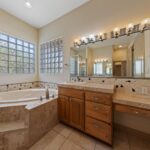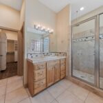 You’ll love this 2,666 SF custom home in the gated Crystal Canyon subdivision. Situated on a corner lot, this Tuscan-style home offers excellent curb appeal and quality 2×6 construction. Enter through custom French doors into a grand foyer with 14-ft ceilings and tile inlay. The spacious main bedroom includes patio access and a luxurious en-suite with soaking tub, custom tile shower, dual vanities, and a large walk-in closet. Two guest bedrooms feature en-suite baths and walk-in closets, plus there’s a convenient powder room. The kitchen is an entertainer’s dream-rich cabinetry, stainless steel appliances, and rough-edged granite countertops. A three-car garage offers plenty of space. The fully fenced backyard includes a large covered patio, outdoor kitchen, and waterfall feature. Residents enjoy access to the Crystal Canyon pool, hot tub, and Mesquite Vistas Sports Club.