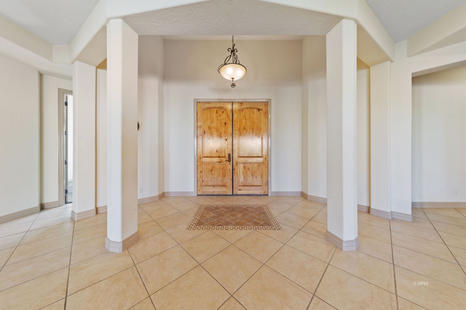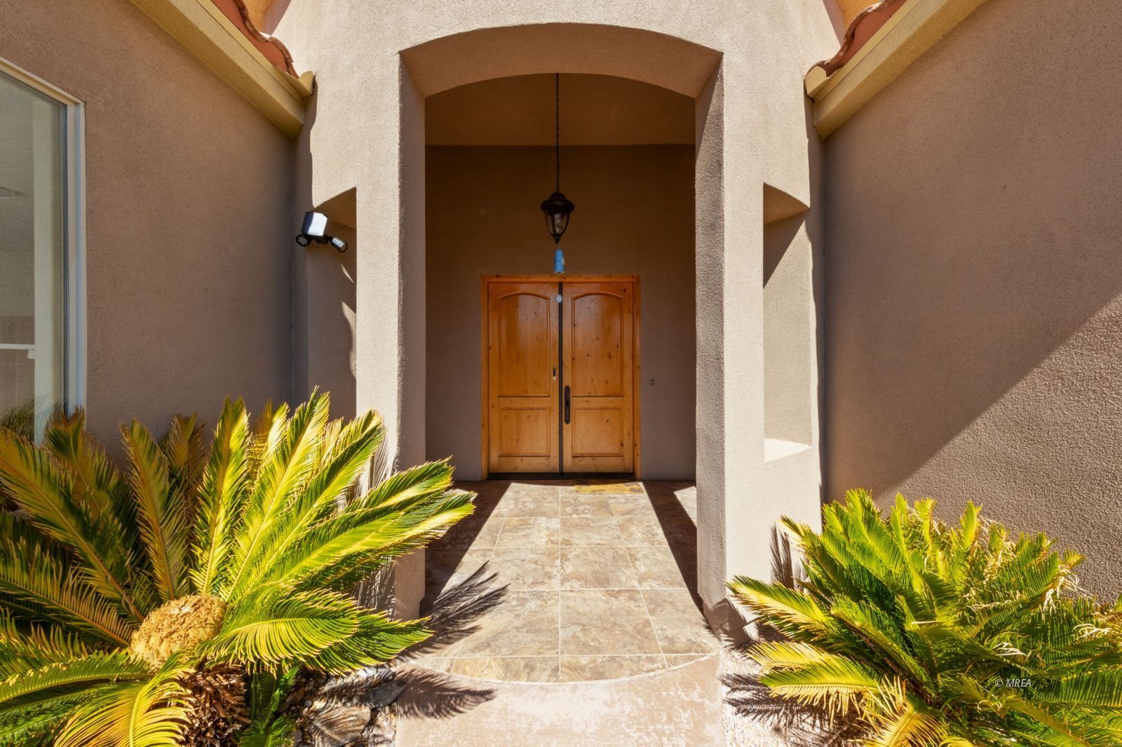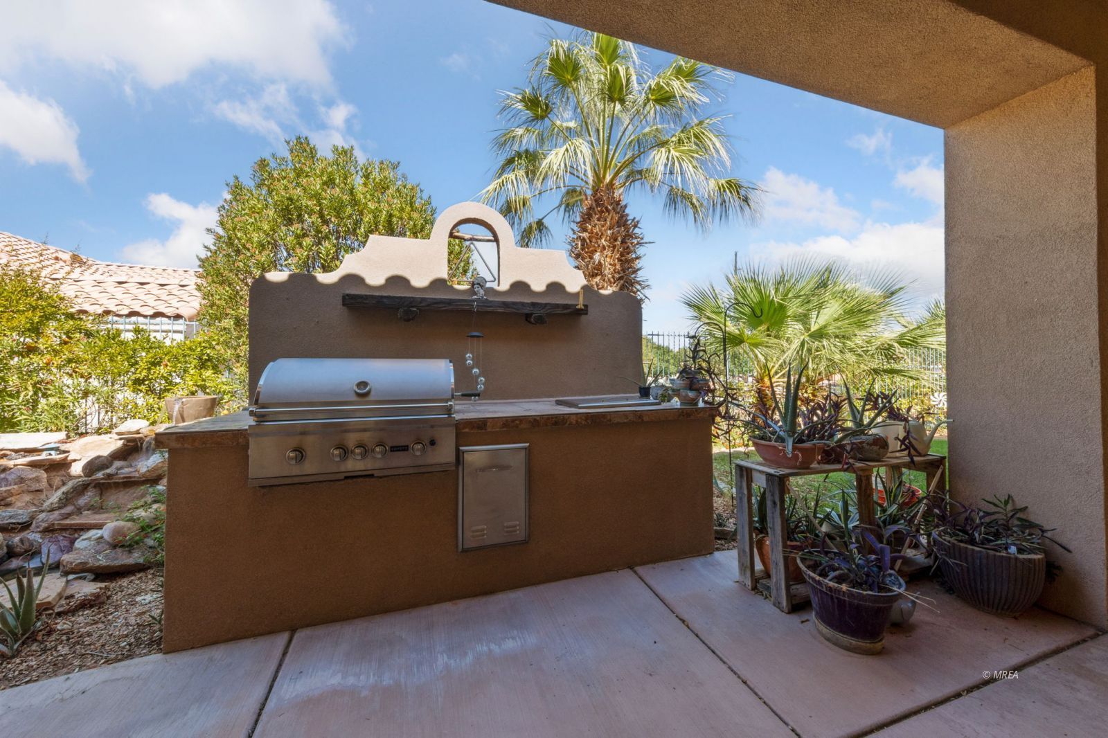 You’ll love this 2,666 SF custom home in the gated Crystal Canyon subdivision. Situated on a corner lot, this Tuscan-style home offers excellent curb appeal and quality 2×6 construction. Enter through custom French doors into a grand foyer with 14-ft ceilings and tile inlay. The spacious main bedroom includes patio access and a luxurious en-suite with soaking tub, custom tile shower, dual vanities, and a large walk-in closet. Two guest bedrooms feature en-suite baths and walk-in closets, plus there’s a convenient powder room. The kitchen is an entertainer’s dream-rich cabinetry, stainless steel appliances, and rough-edged granite countertops. A three-car garage offers plenty of space. The fully fenced backyard includes a large covered patio, outdoor kitchen, and waterfall feature. Residents enjoy access to the Crystal Canyon pool, hot tub, and Mesquite Vistas Sports Club.
