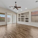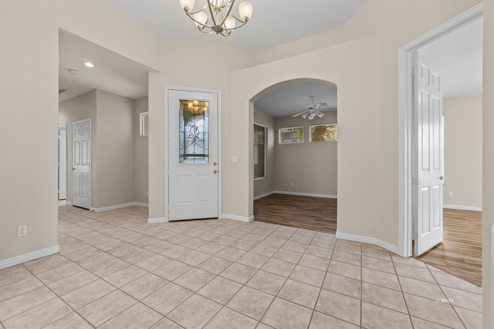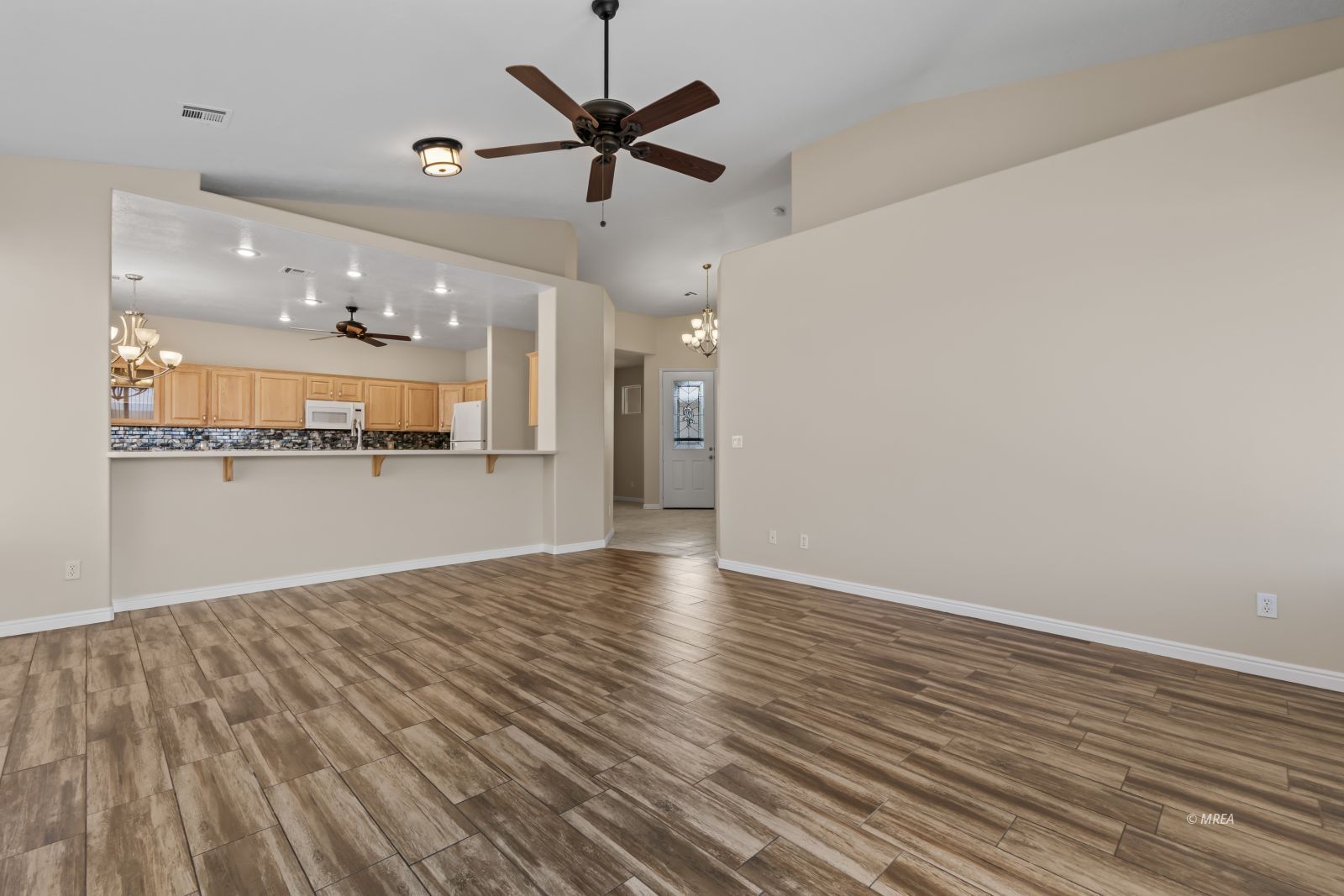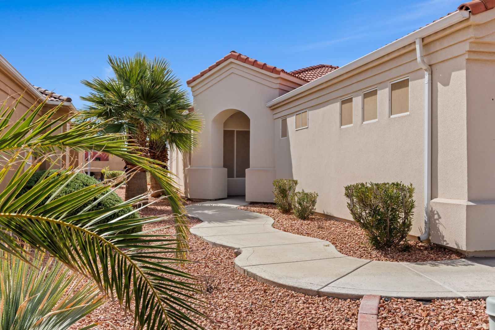 This inviting home features an open, airy layout with vaulted ceilings and a neutral color palette that creates a bright and comfortable atmosphere throughout. Durable tile and vinyl flooring provide both style and easy maintenance.The spacious great room flows seamlessly through the main living areas, offering an open feel that’s perfect for relaxing or entertaining. A versatile den provides the ideal space for a home office, hobby room, or additional sitting area. Step outside and enjoy the peaceful surroundings with two covered patios-one just off the great room and another private patio outside the primary bedroom, perfect for morning coffee or unwinding in the evening. Located in a well-maintained gated HOA community, residents enjoy access to fantastic amenities including a clubhouse, pool, spa/hot tub, and tennis courts, making it easy to enjoy the Mesquite lifestyle year-round.