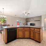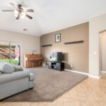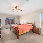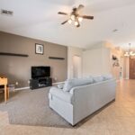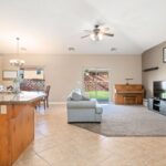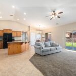 No HOA and single-level living in this spacious 4-bedroom plus den, 3-bath single-family home designed with comfort and functionality in mind. The open floor plan is enhanced by vaulted ceilings, upgraded lighting fixtures, and abundant natural flow throughout the main living areas. The kitchen features upgraded staggered cabinetry, granite countertops, and plenty of workspace for cooking and entertaining. Tile flooring runs throughout the home, with carpet in the living room and bedrooms for added comfort. Ceiling fans in every room provide year-round efficiency and comfort. The generously sized primary suite offers a garden tub, separate shower, and a large walk-in closet, creating a relaxing private retreat. Additional highlights include extra storage space and multiple linen closets, giving you plenty of room to stay organized. Step outside to a private backyard with grass and a storage shed, ideal for outdoor enjoyment, pets, or extra storage needs. This well-designed home combines spacious single-level living with no HOA restrictions, making it a rare and desirable opportunity.