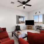 Situated on a premium end location next to guest parking, this well-planned condominium includes three bedrooms, two bathrooms and two exterior storage closets. Enjoy breathtaking city, mountain, and flat top mesa views with stunning sunset views from the large front patio. The front patio offers an inviting space for entertaining while the private balcony off the primary bedroom provides a peaceful retreat with sunrise views. Recent upgrades include fresh interior paint, new vertical blinds in the living room, kitchen, and guest bedroom, updated ceiling fans in the living and primary bedrooms, and a new heat pump with full furnace installed in March 2025-covered by a 10-year transferable warranty. The kitchen includes a reverse osmosis water system that also supplies the refrigerator’s ice maker. Appliances in both the kitchen and laundry areas are included, and the property can be sold fully furnished with d cor at no additional cost. Homeowners also enjoy access to the Mesquite Vistas clubhouse, featuring a resort-style outdoor pool and spa, fitness room, and courts for pickleball, tennis, basketball and volleyball. Come see this property for yourself.. before it is gone!