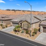 Welcome to 475 Verbena Lane in Mesquite, NV, a beautifully upgraded 2021 Legacy Homes “Residence 1833” offering 3 bedrooms, 2.5 bathrooms, and 1,833 sq ft of thoughtfully designed living space. This move-in ready Mesquite home features upgraded exterior stonework, 8-ft front and rear storm doors, wood-look tile flooring, plush bedroom carpet, and a versatile formal dining room ideal for a home office or flex space. The open-concept kitchen is perfect for entertaining, showcasing a natural gas cooktop, Whirlpool stainless steel appliances, granite countertops, and abundant cabinetry. The spacious primary suite includes 17×17 tile, double vanities with E-Stone counters, and a beautifully tiled walk-in shower. Enjoy seamless indoor-outdoor living with an extended covered patio, fully fenced backyard, and a cozy side courtyard with pergola. New awnings on the side and back patios and a new water circulation system enhance comfort and efficiency. Additional upgrades include a tankless water heater and Imperial water softener. Located in desirable Mesquite, NV close to golf, shopping, and recreation, this meticulously maintained home is a must-see!