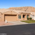 This home, located in the exclusive gated community of Copper Bluffs, offers stunning mountain views from the front yard, big enough for a courtyard or seating area to enjoy your morning coffee. Backyard views of the Mesa Bluffs and a large open space give this home multiple spaces to enjoy Mesquite’s beautiful weather. The kitchen boasts granite countertops and ample surface space, perfect for cooking and entertaining. Painted kitchen cabinets and vaulted ceilings enhance the living room, kitchen, and dining areas, creating an open, airy feel. Newer appliances in the kitchen. The home has desirable tiled floors throughout the entryway, living room, kitchen, dining room, hallways, bathrooms . Large windows along the south side of the home allow natural light to flood the space, creating a warm and inviting atmosphere. Located next to open space there is a large lot feel to this property from the backyard and provides a great outdoor space with a large covered patio. Mesquite Vistas amenities are within walking distance of this beautiful well kept home. Make an appointment today to see this property.