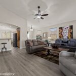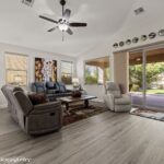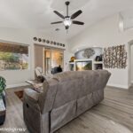 Located within a gated active adult community and perfectly set along the Falcon Ridge golf course, this fully furnished, freshly painted int & exterior, designer-decorated home offers a rare blend of scenery, privacy, and everyday comfort. This home enjoys sweeping golf course and mesa views, creating a peaceful backdrop for morning coffee, sunset evenings, and relaxed outdoor living. Recent upgrades feature luxury plank flooring throughout, crisp modern baseboards, and a light-filled layout designed to emphasize the scenic views. The kitchen is exceptionally functional with abundant counter space and extensive cabinetry, a center island, separate eating bar, sunny dining nook, and newer appliances. Refrigerator, RO system, and water softener are included. Bedrooms are generous in size, offering comfort and privacy, with one guest bedroom featuring a private ensuite bath, ideal for visitors or extended stays. A half bath adds convenience for guests. The spacious laundry room is beautifully staged with cabinetry, a utility sink, and washer and dryer included. An OVERSIZED 3-garage with built-in cabinetry and a NEW BOSCH AIR CONDITIONER complete this exceptional golf-course residenc