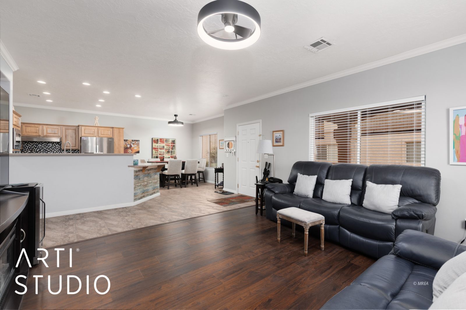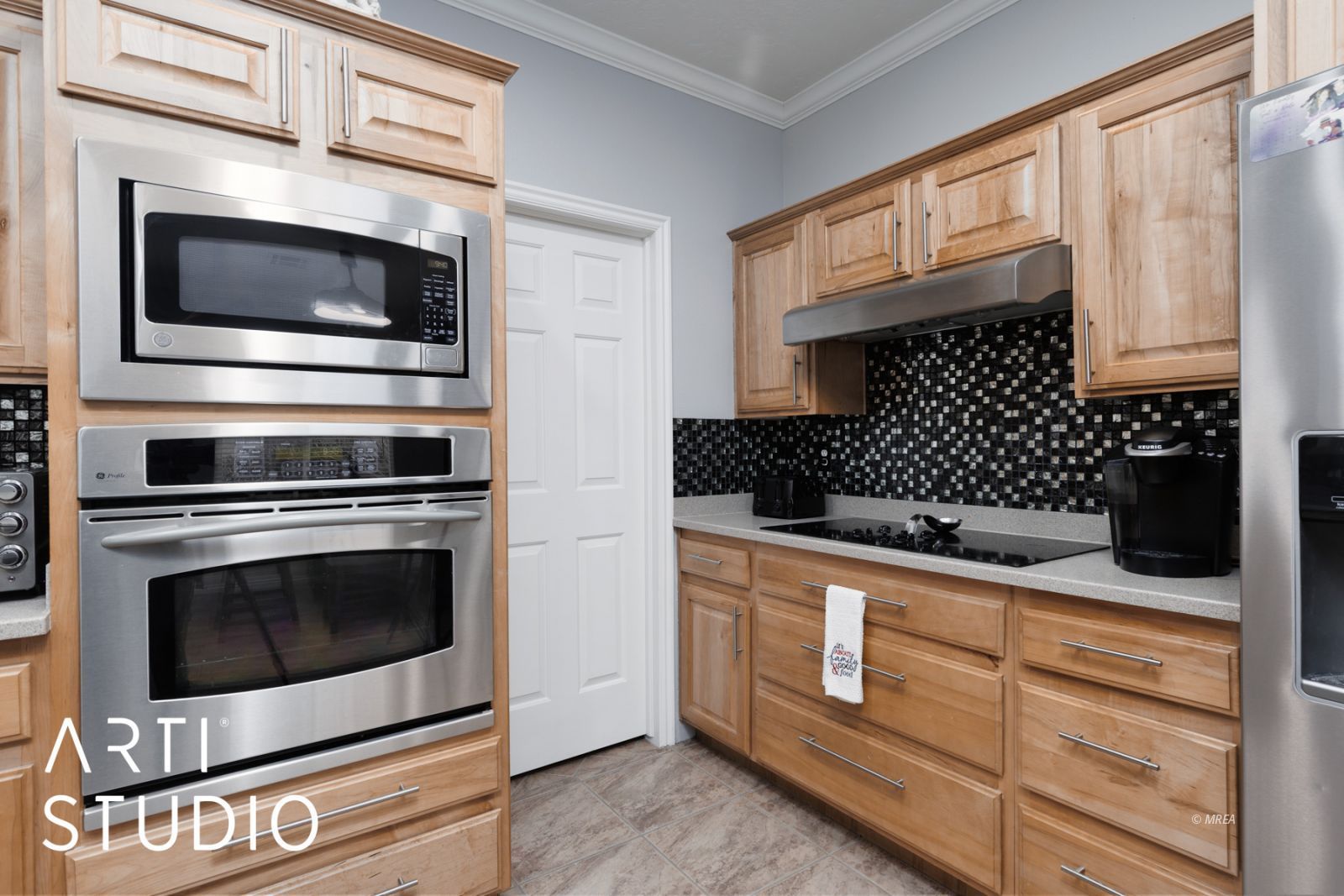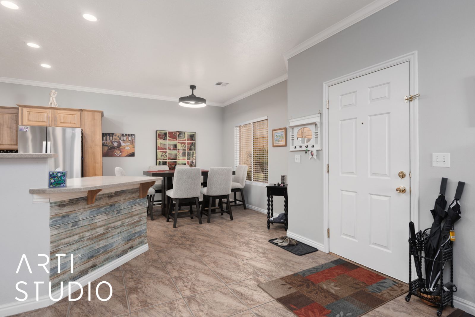 Welcome to Sandstone Condominiums, a gated and beautifully maintained community in the heart of Mesquite-just minutes from premier golf, shopping, and local parks. This spacious 2,738 sq ft townhome offers 4 bedrooms, 3.5 bathrooms, and an oversized 2-car garage with built-in cabinetry. All kitchen and laundry appliances remain at no extra cost, and the home is sold fully furnished. The upgraded kitchen includes Corian countertops, stainless steel appliances, a flat cooktop, reverse osmosis system, and a walk-in pantry. Dual primary suites-one on each level-feature walk-in closets, step-in showers, and dual vanities; the upstairs suite includes a deep, jetted tub. A private kitchenette is also located upstairs, ideal for added convenience. Additional highlights include an indoor elevator, laminate hardwood flooring, 16-inch tile in wet areas, solar-tinted windows, a large craft room with utility sink, new blinds throughout, all-new faucets, eight new ceiling fans, and new recessed lighting. Two covered outdoor spaces offer relaxing retreats. HOA amenities include a pool, spa, clubhouse, cable TV, and full yard maintenance. Come look for yourself.. Do not miss out!