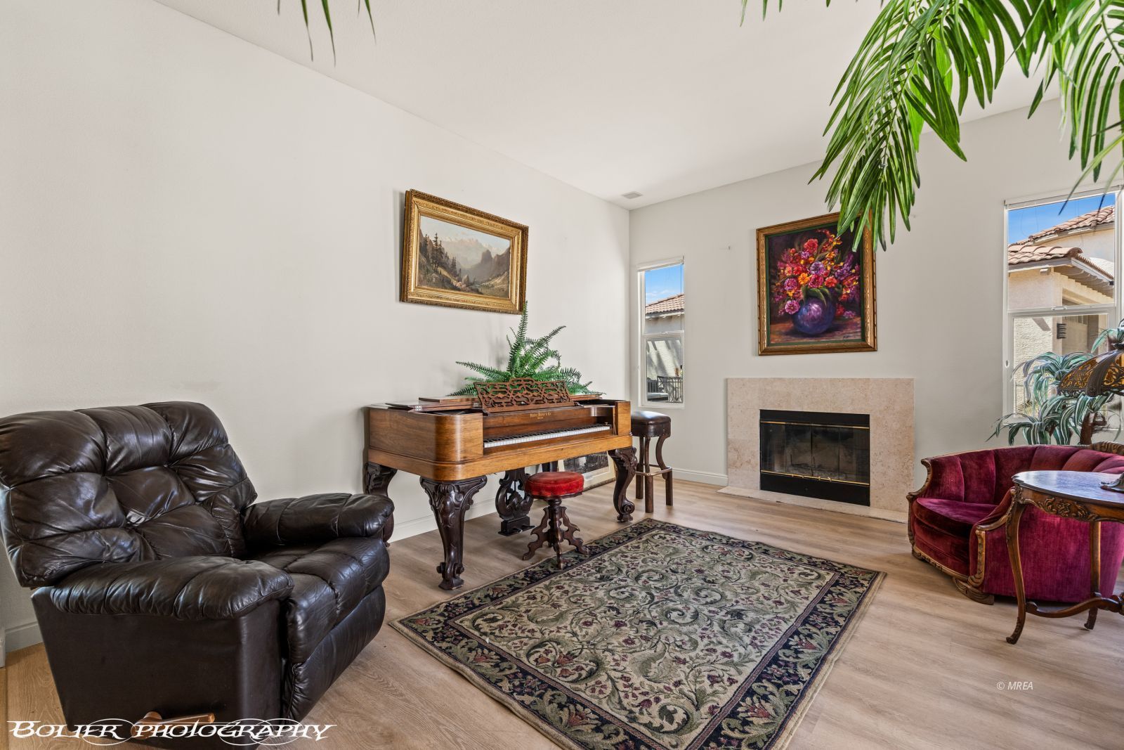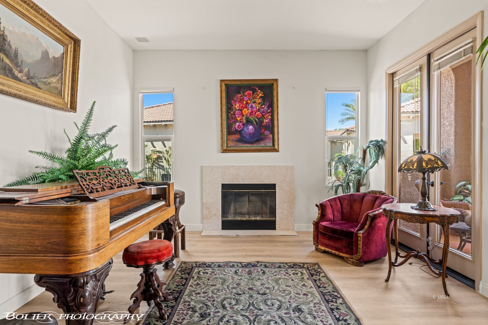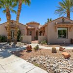 This rare, custom-designed 2,620 sq. Ft. Home on the Oasis Palmer Golf Course blends luxury, privacy, and stunning views. Perched on the 13th hole with little risk of stray golf shots, it offers a main bedroom with expansive bay windows showcasing mountain views, plus a Jack and Jill bath between a guest bedroom and den (convertible to a 3rd bedroom). The luxurious main bath features a custom-tiled large shower, dual vanities, and a spacious walk-in closet. The kitchen, perfect for entertaining, features beautiful cabinetry, custom counter tops, double ovens, and an abundance of windows offering natural light and sweeping views. The open-concept great room and formal living room with a wood-burning fireplace are ideal for gatherings. A welcoming front courtyard and a charming guest casita provide additional space. The over sized 770 sf. Garage offers ample storage. Located in a low-traffic cul-de-sac within sought-after Rancho Santa Barbara, this home includes access to the Mesquite Vistas Sports Club. SELLER FINANCE AVAILABLE