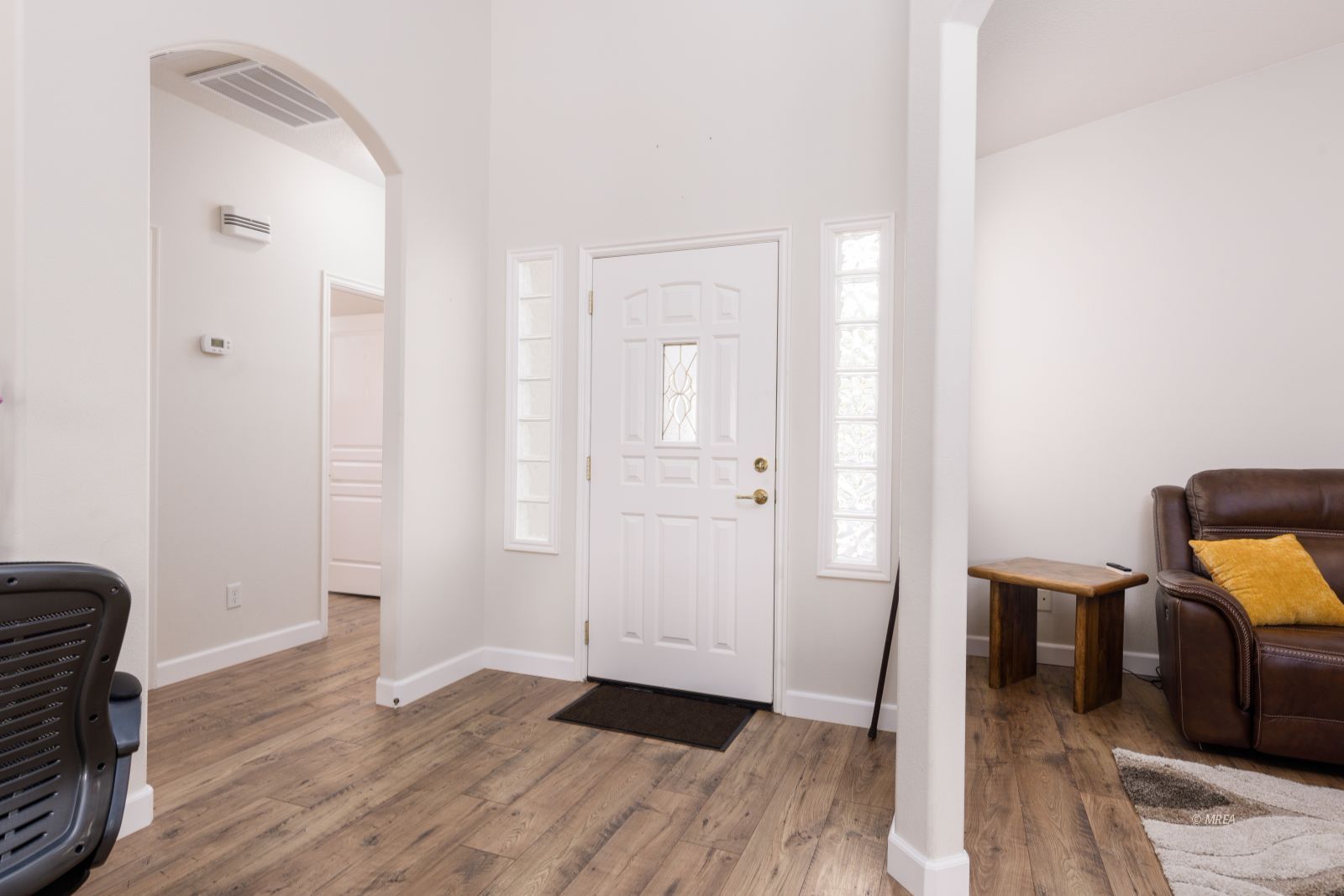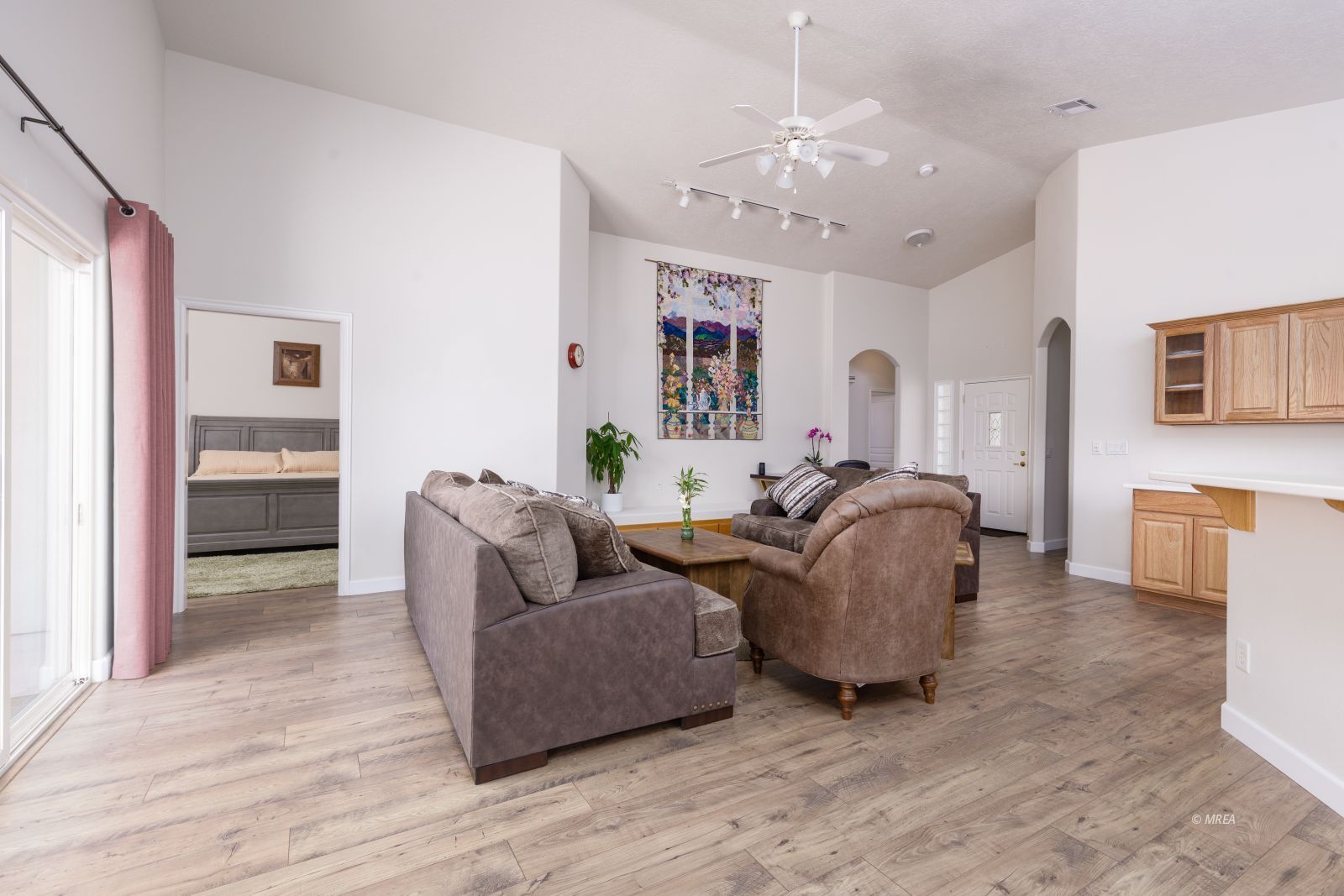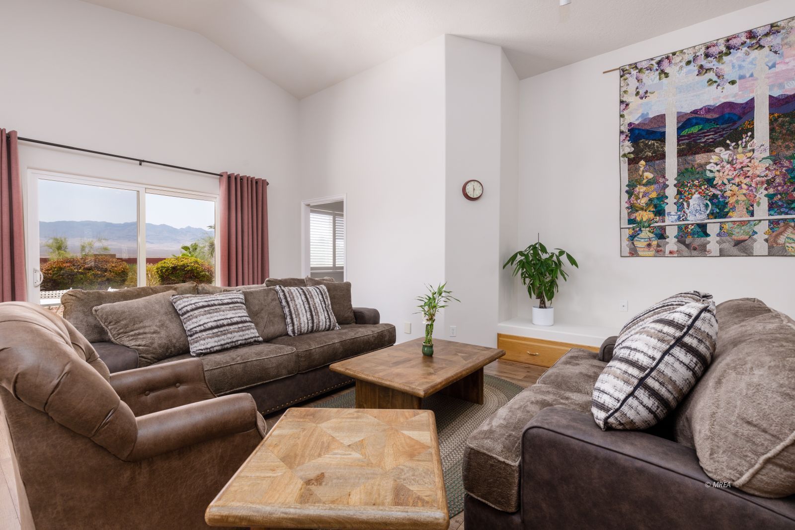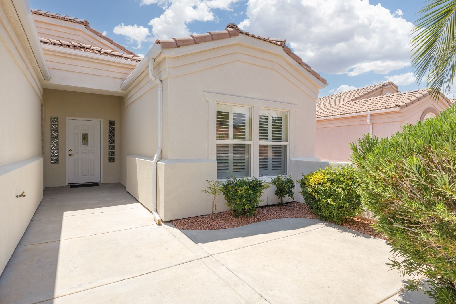 Welcome to your serene desert oasis in Mesquite, NV! Situated on a picturesque lot in a 55+ community, this beautifully maintained home offers panoramic views of the surrounding mountains and a meticulously landscaped yard with palm trees and vibrant natural flora.Inside, discover a spacious, open floor plan, featuring a modern kitchen with updated appliances, ample cabinetry, and breakfast bar, perfect for casual dining. The living area is accented by high ceilings and abundant natural light through large windows, providing a fresh and airy feel.This home boasts 2 cozy bedrooms and a den/office. The primary suite includes a private bathroom with dual vanities and a large spacious closet. A second bathroom and dedicated laundry room add to the home’s convenience and functionality.Step outside to the covered patio to simply relax and enjoy Mesquite’s stunning sunsets. With privacy, peace, and proximity to local amenities, this home is a remarkable find. Make it yours and embrace the blend of comfort and desert beauty!