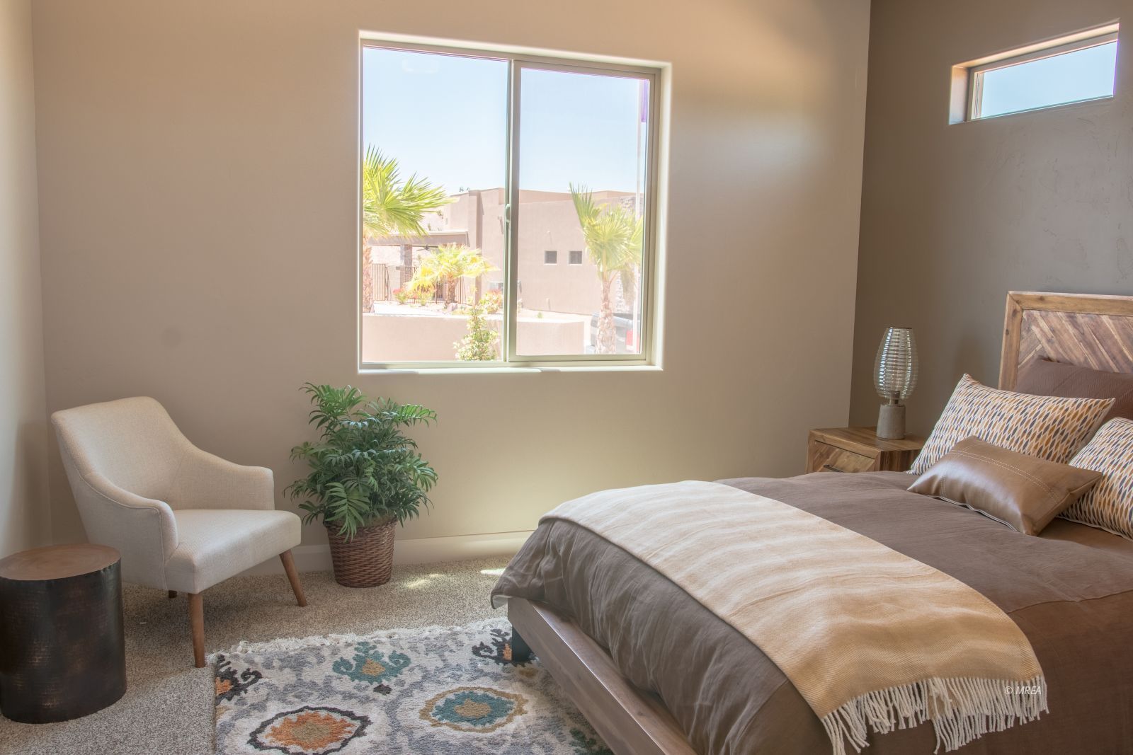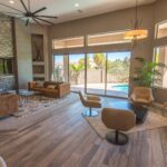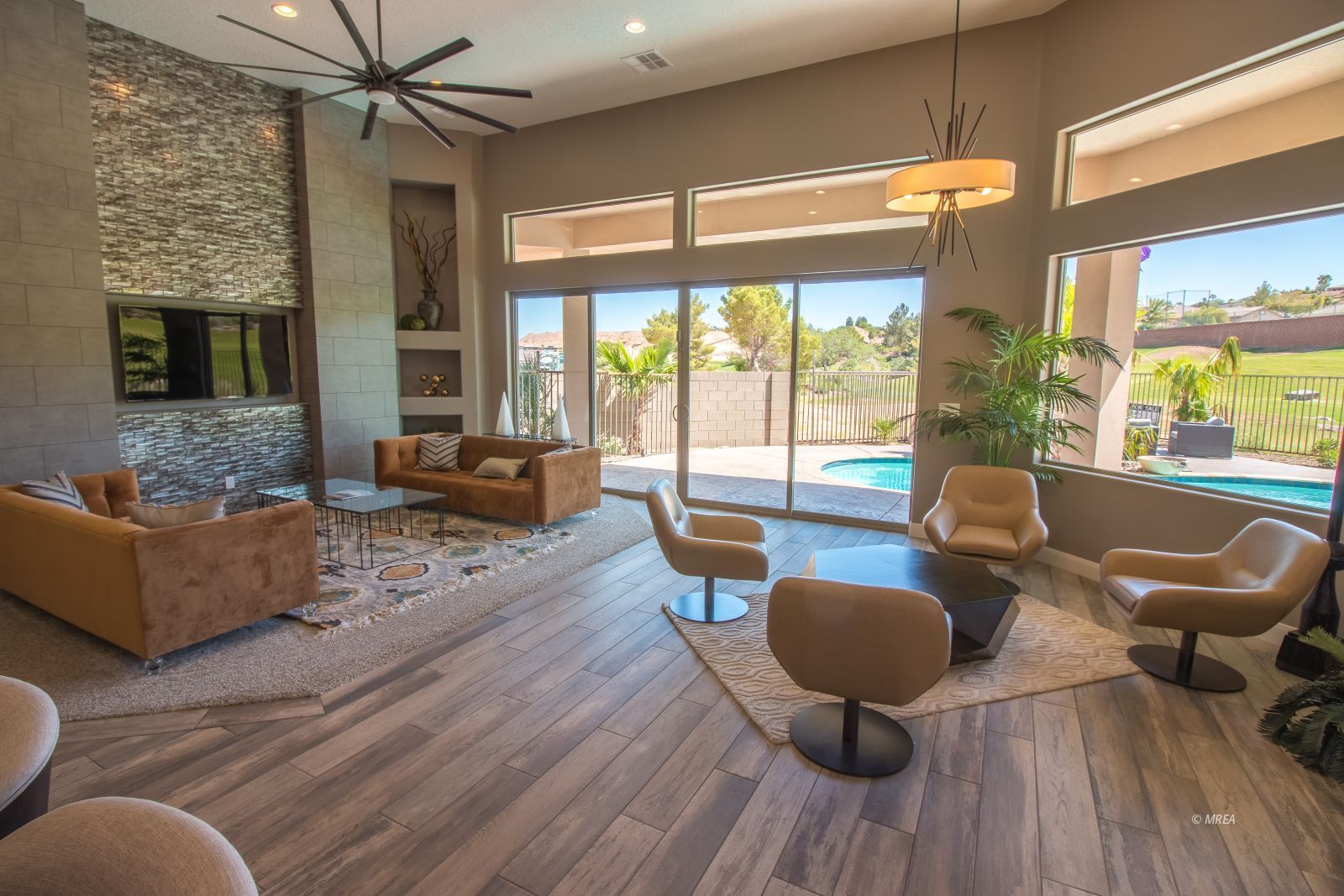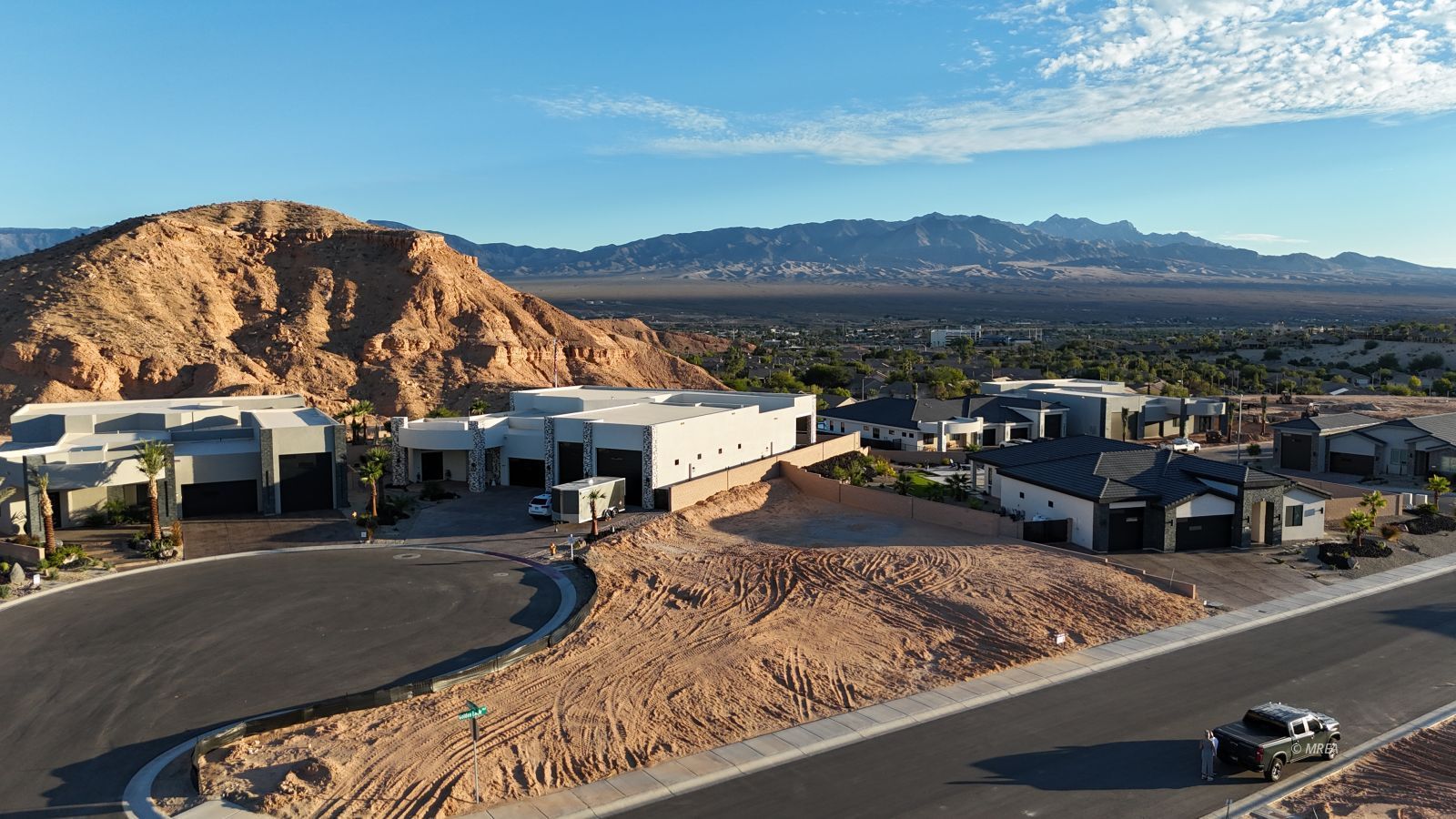 TO BE BUILT ” This property will feature two primary suites along with a third bedroom and bath, complemented by a three-car garage and mountain views located within a cul-de-sac/corner. The home boasts 10-12 ft ceilings, a flat roof, and a 16 ft double sliding door in the living room. Interior elements include eight-foot doors throughout, an iron front door, GE appliances, undermount sinks, and a spacious walk-in pantry. The open concept living room is fitted with ceiling fans and lighting in all bedrooms and the main living area. Bathrooms offer tiled walk-in showers, while luxury flooring or tile installed throughout, with carpeting in the bedrooms. A large circular covered patio adds to the outdoor space. The front dining room offers flexibility and may serve as an office if desired. Additional features include a large curved driveway, insulated garage walls, and a comprehensive 2-10 year warranty. The house plan is adaptable and may be customized. Pictures are of a model home with the same floor plan.