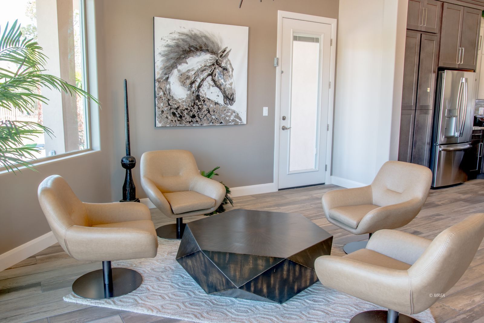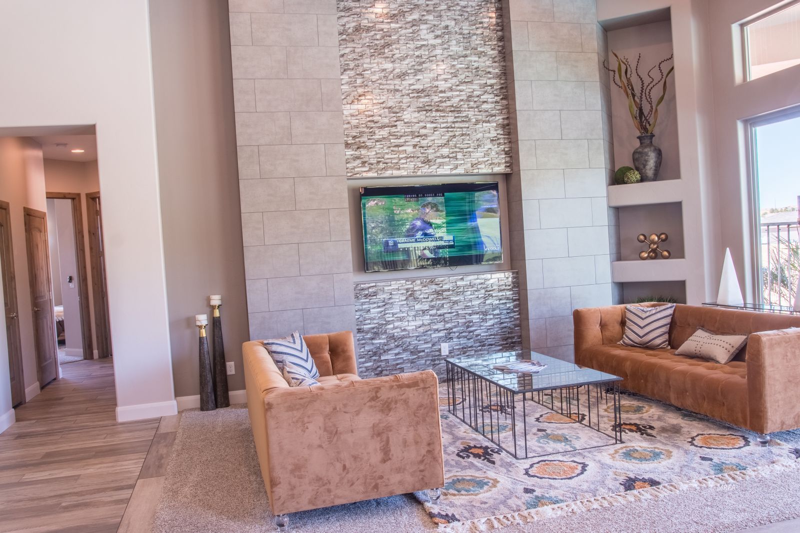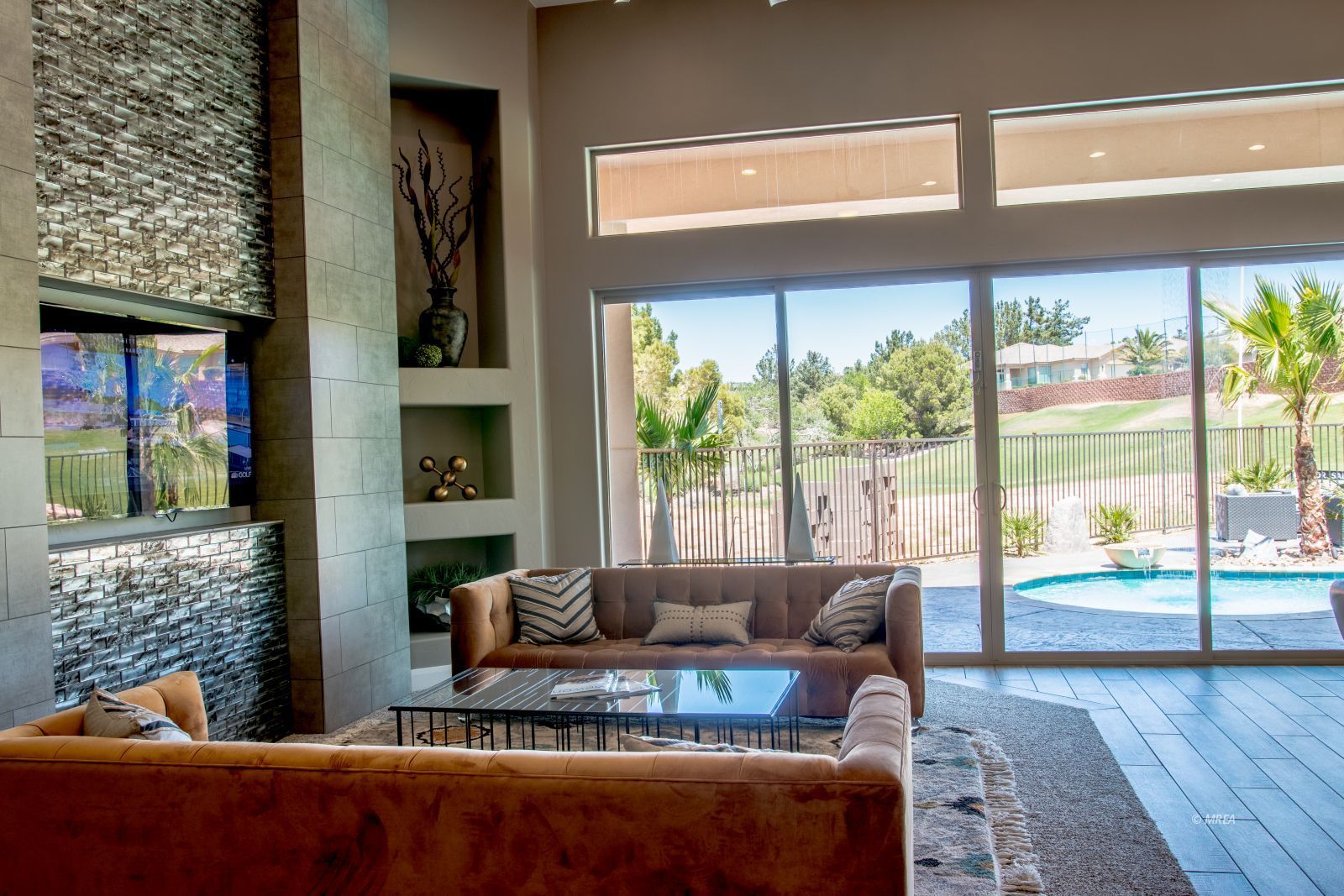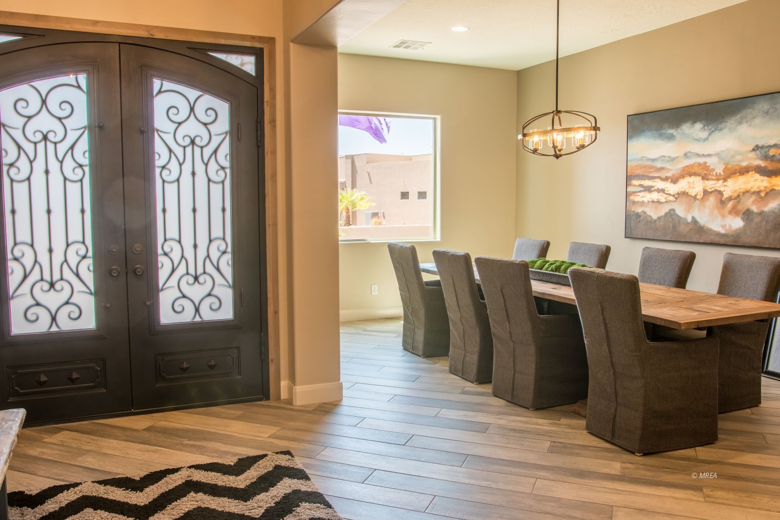 TO BE BUILT ” This property will feature two primary suites along with a third bedroom and bath, complemented by a three-car garage and mountain views located within a cul-de-sac/corner. The home boasts 10-12 ft ceilings, a flat roof, and a 16 ft double sliding door in the living room. Interior elements include eight-foot doors throughout, an iron front door, GE appliances, undermount sinks, and a spacious walk-in pantry. The open concept living room is fitted with ceiling fans and lighting in all bedrooms and the main living area. Bathrooms offer tiled walk-in showers, while luxury flooring or tile installed throughout, with carpeting in the bedrooms. A large circular covered patio adds to the outdoor space. The front dining room offers flexibility and may serve as an office if desired. Additional features include a large curved driveway, insulated garage walls, and a comprehensive 2-10 year warranty. The house plan is adaptable and may be customized. Pictures are of a model home with the same floor plan.