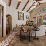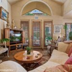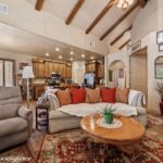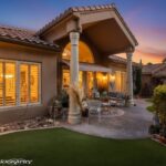 Beautifully appointed home in a small, desirable community, showcasing timeless Tuscan charm and quality craftsmanship throughout. Vaulted ceilings with exposed wood beams, custom textured interior paint, and custom tile flooring create a warm, inviting atmosphere. Rich Knotty Alder cabinetry and upgraded cabinets highlight the kitchen, which features a large granite-covered island and walk-in pantry, perfect for entertaining and everyday living. Wood shutters add classic character, while a den with double doors provides a private home office or flex space. The guest bathroom vanity is a standout design feature, styled like a fine piece of furniture and adding unique character. Architectural pillars frame the covered back patio, enhanced by a costly retractable awning. The front and backyard feature new, maintenance-free artificial turf for year-round beauty. Home is a member of The Mesquite Vistas, offering amenities including a pool, fitness facility, pickleball, and more… delivering charm, comfort, and a low-maintenance lifestyle.