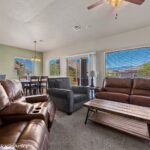 Low HOA, only $35 per month!! This fully furnished 3-bedroom, 2-bath home is offered as TURNKEY for $415,000-including everything, furniture, TVs, kitchen dishes, pots and pans, linens, all accessories. The backyard, facing east, offers partial mountain views and features a covered patio plus a BBQ island perfect for entertaining! Inside, tile flooring runs throughout, with carpet in the bedrooms and living room. The open floor plan boasts vaulted ceilings, warm paint tones, attractive cabinetry, granite countertops, and stainless steel appliances. The refrigerator and washer/dryer are included. The spacious kitchen comes with a walk-in pantry and a raised bar with bar stools. This property has been part of a vacation rental program with a few stays scheduled in April, which can remain or be removed as needed. FURNISHED – TURNKEY HOME