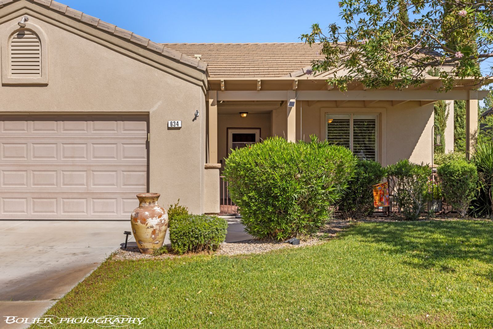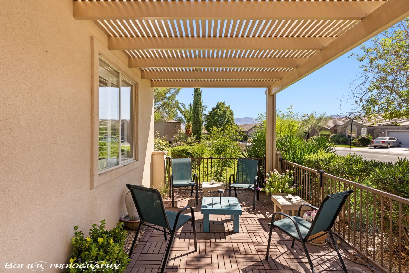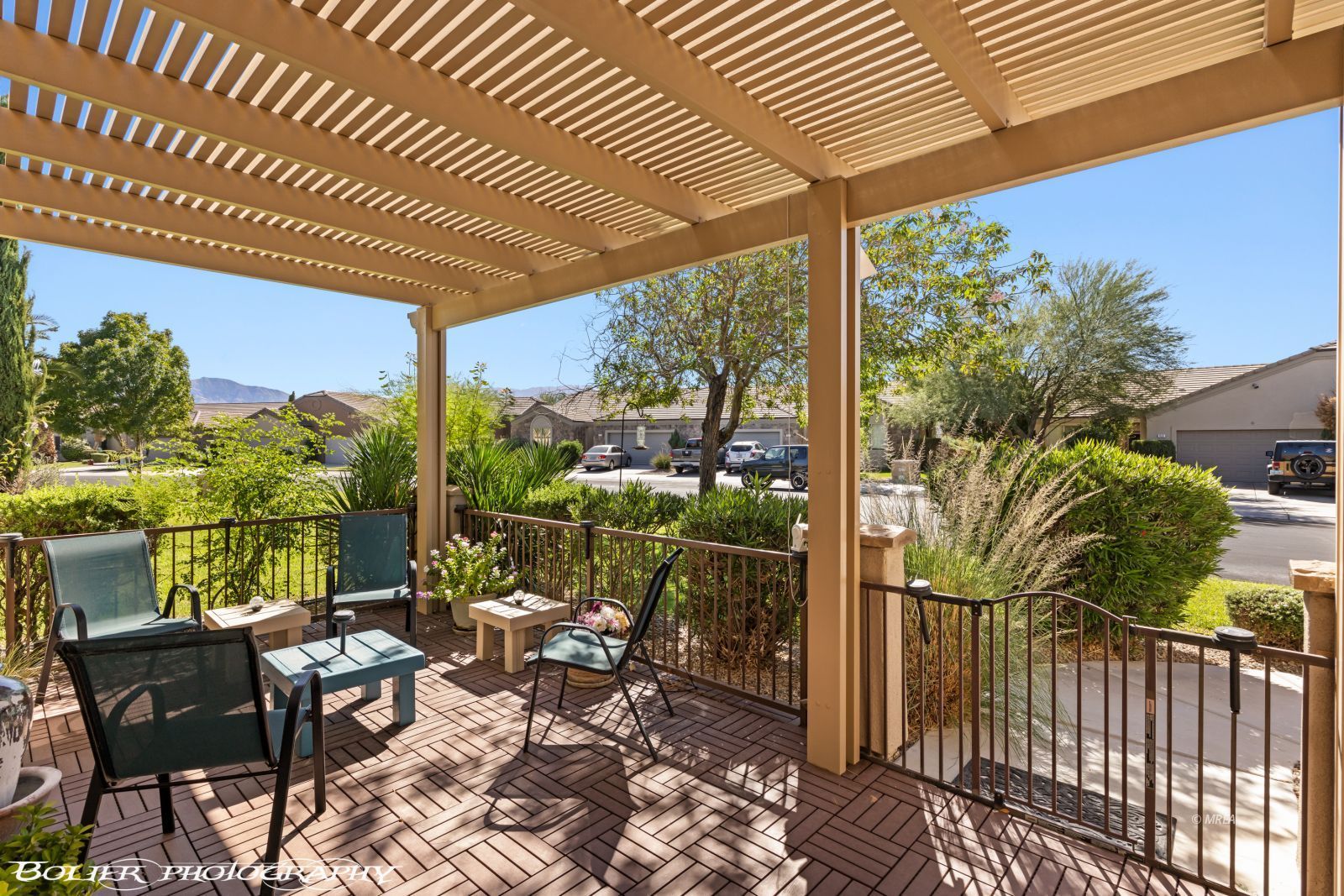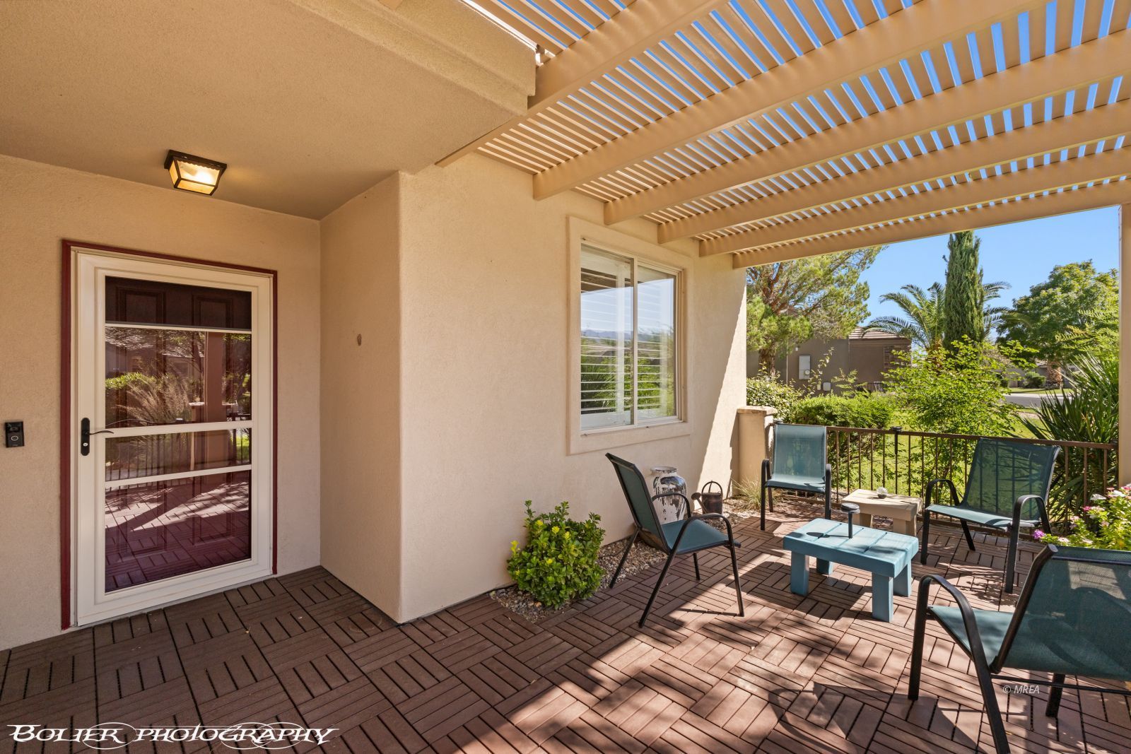 Located on the Coyote Willows Golf Course. Beautifully designed pergola covers the front courtyard entry, creating one of two outdoor entertaining options at this townhome. Modern interlocking deck tiles cover the courtyard patio making it an impressive entryway. New Plantation Shutters throughout the entire townhome. New Vinyl Plank Flooring has been installed in living room and bedrooms. New Granite Counters in the kitchen New Refrigerator – New Dishwasher. Living room has large windows combined with a glass sliding door that bring in lots of natural light and access to the covered patio. Main bedroom suite is generous in size and has a tub/shower combo. Walk-in closet is very roomy. Fabulous floor plan for guest bedrooms and bathroom. Guest bathroom offers two separate vanities – two sinks – two doors. Guest bedroom # 1 has direct access to the bathroom. Large spacious covered patio spans the entire length of the home. This huge outdoor patio enables year round outdoor enjoyment with a north facing patio. Incredible Community Pool and Spa (one of the largest and prettiest community pools and spas in Mesquite). Come enjoy the magic of Mesquite.